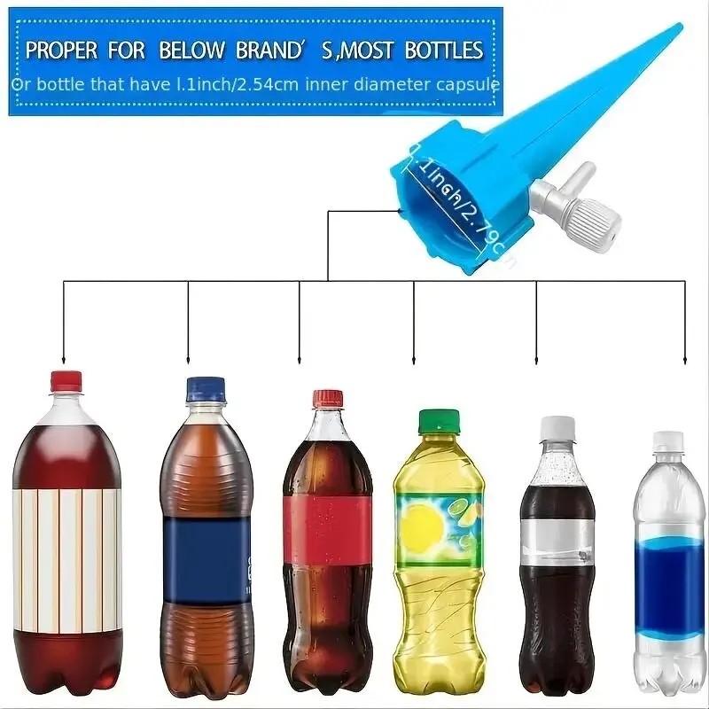 4. Watering bulbs Fit most below brand’s bottle: Pepsi,coca cola,Lipton,Deet Coke,Aqufina or other bottle that have 1.1inch inner diameter capsule.