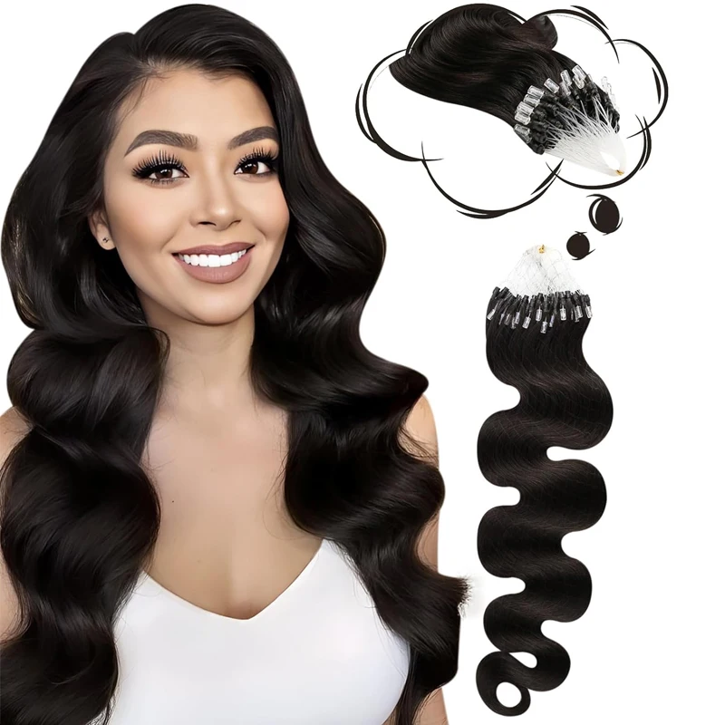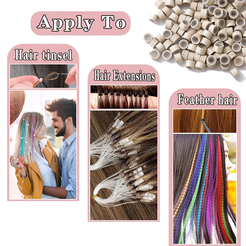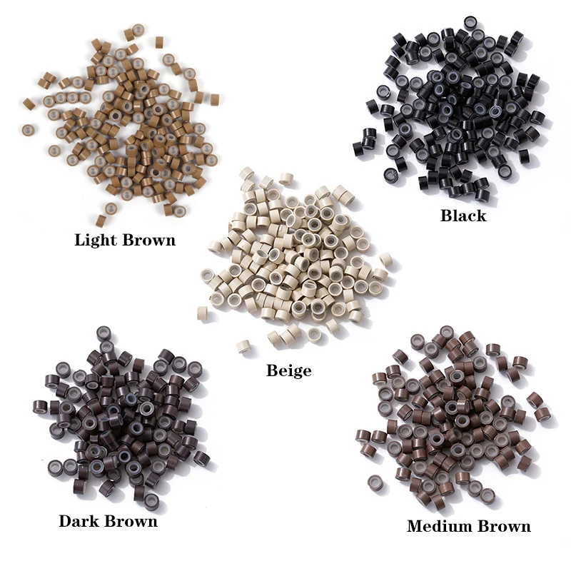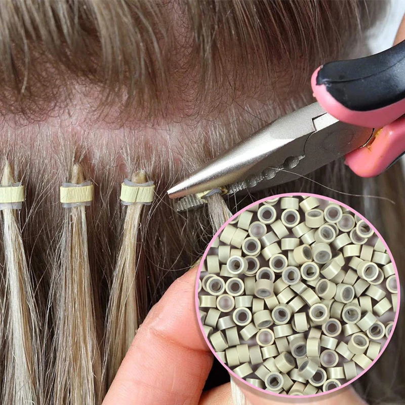 Micro Ring Links Beads — Premium Light Aluminum & Silicone, For Installation Of I Tip Human Hair Extensions.