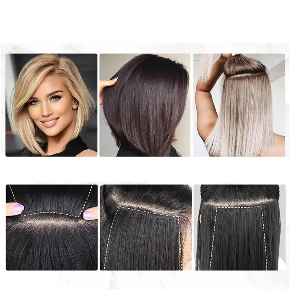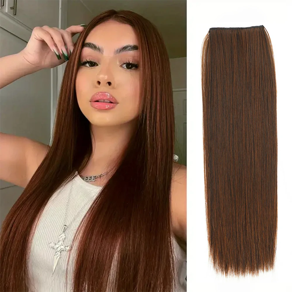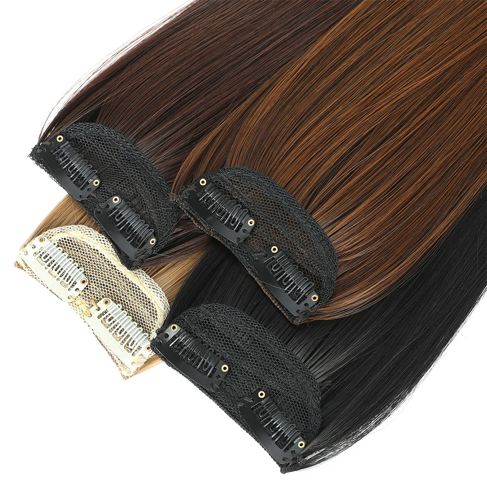 12inch Two Clip In bone Straight Toppers Invisible Hair Extension Synthetic wig Thinning Adding Hair Volume women Hair Accessory