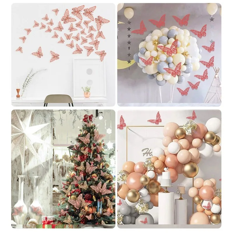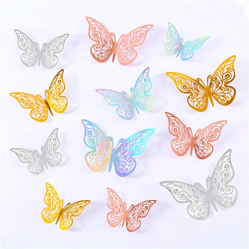 12pcs Fashion 3d Hollow Butterfly Creative Wall Sticker For Diy Window Glass Stickers Modern Wall Art Home Party Decorations Diy