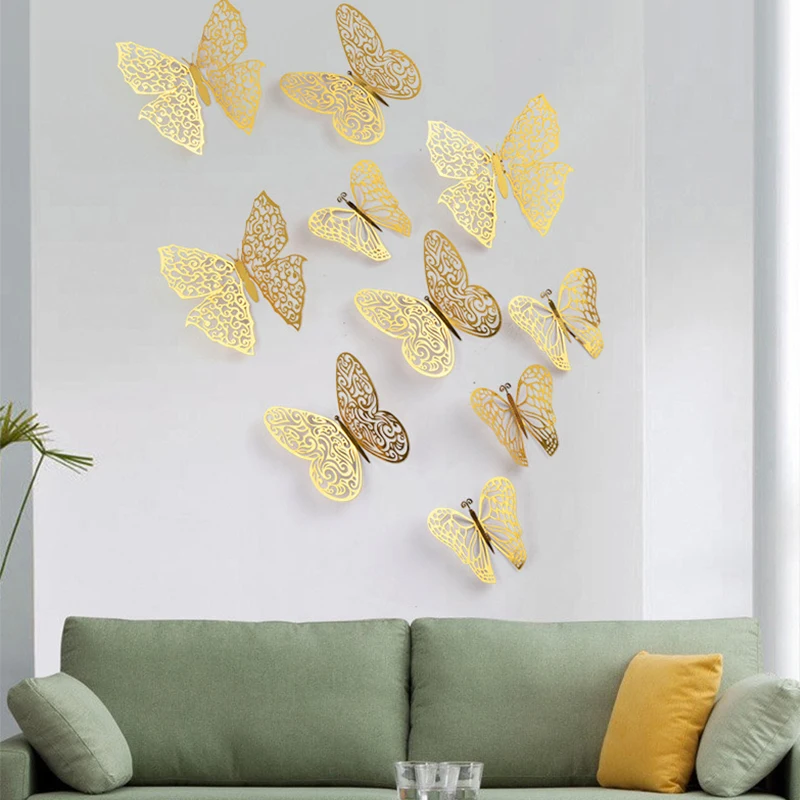 Gold And Silver Hollow Butterfly Wall Sticker Simulation Party Decoration
