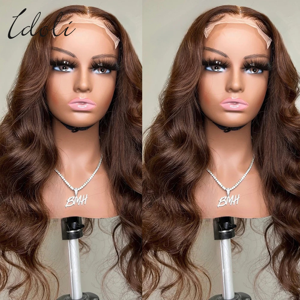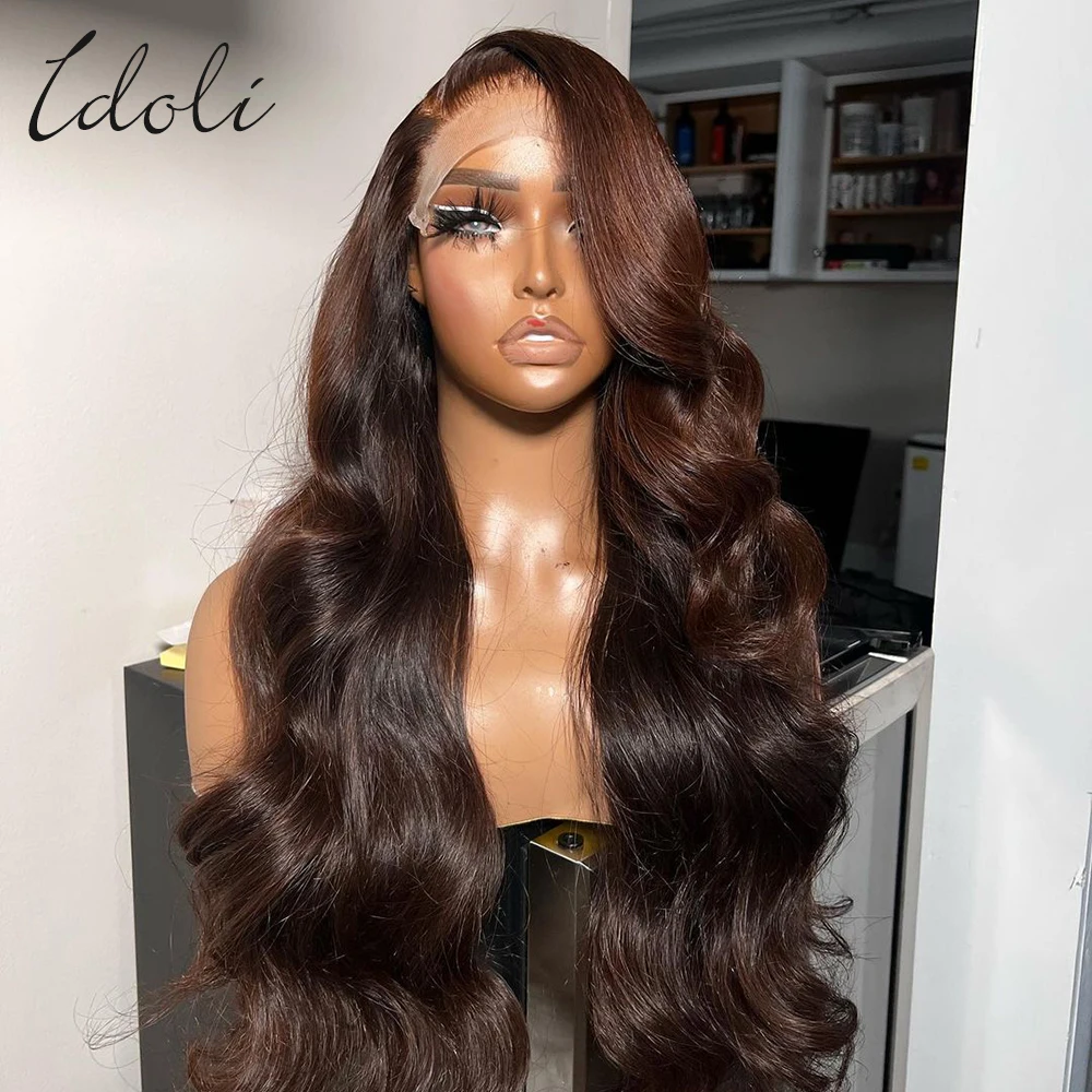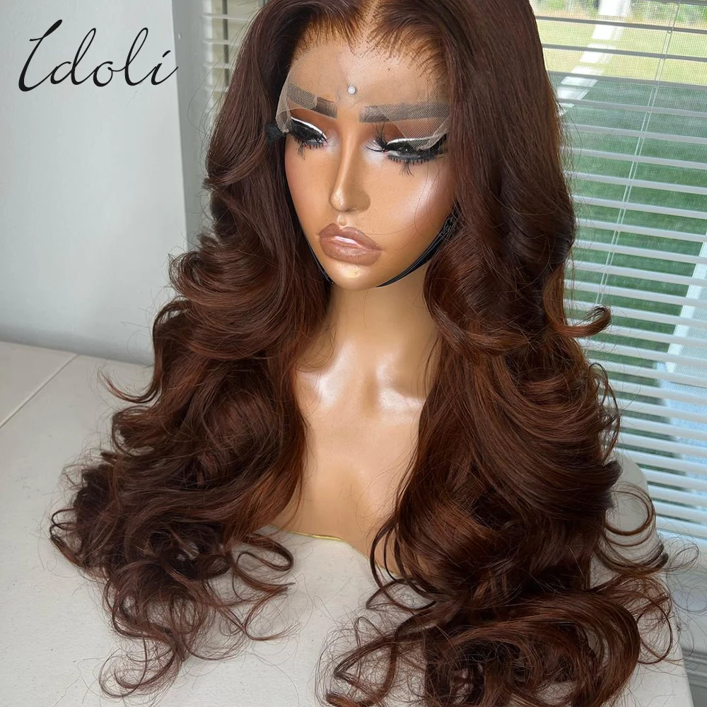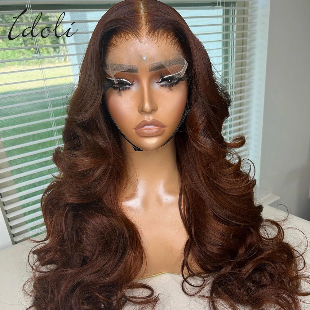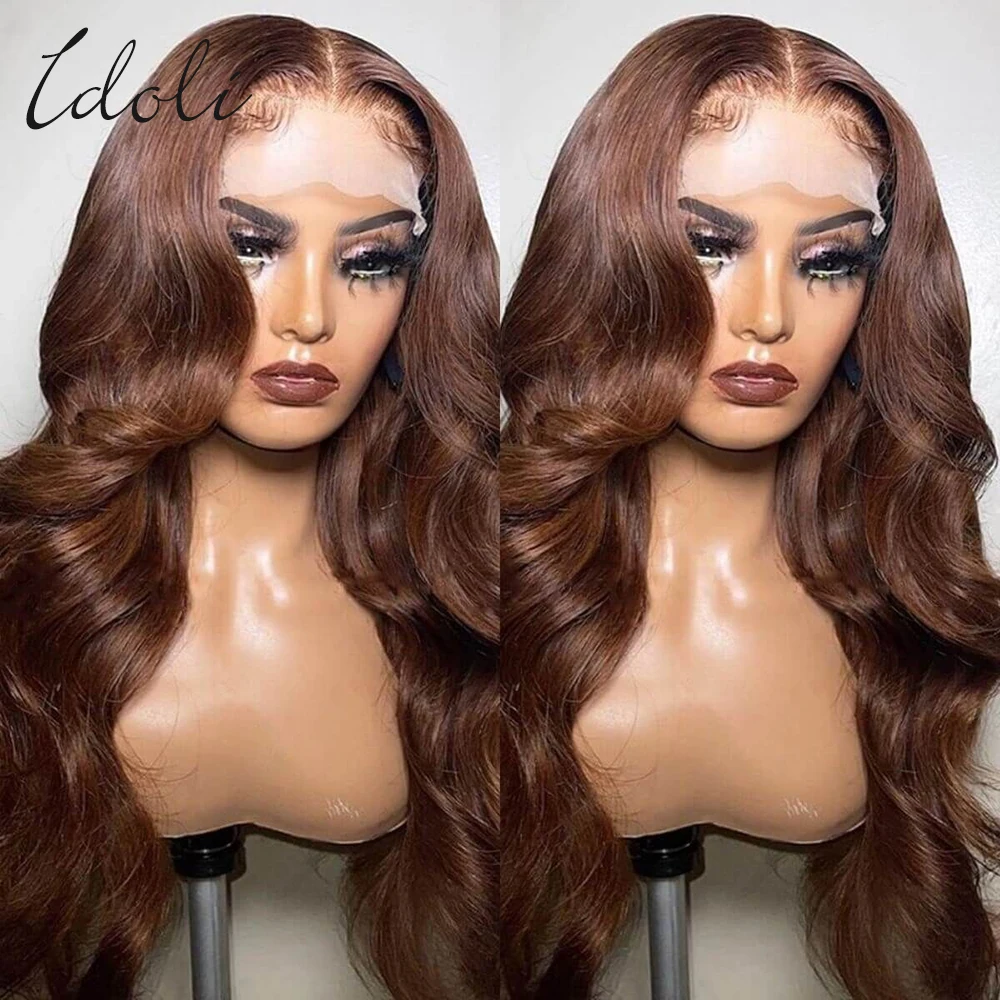 13×6 Chocolate Brown Body Wave Lace Front Wig HD Transparent Lace Frontal Wig Human Hair Preplucked Colored Human Hair Wigs 180%