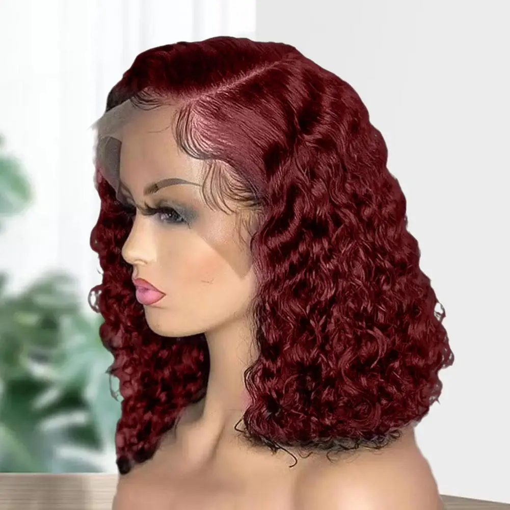 14/26Inch Short Wavy Bob Wigs Women Natural Looking Synthetic Wig Retro Wine Red Synthetic Hair Shoulder Length Synthetic Hair