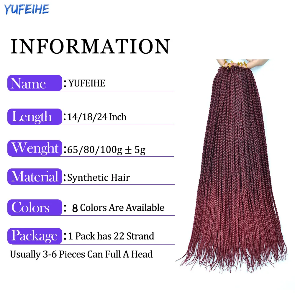 Material: Synthetic Hair Box Braids Hair Extension