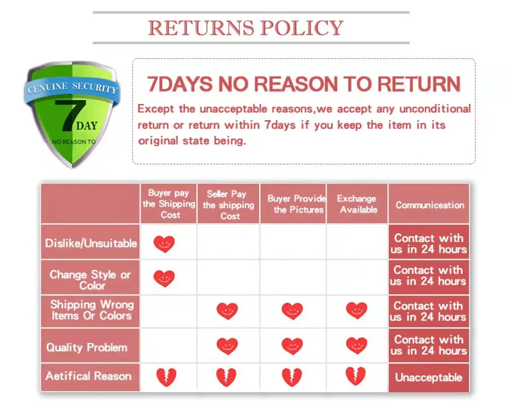 • If you do not want the product you’ve received you may request a refund but you must return the item at your expense and the item must be unused.