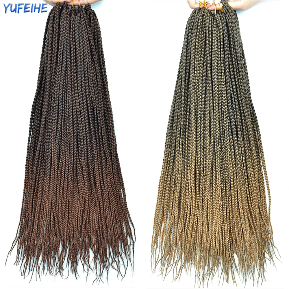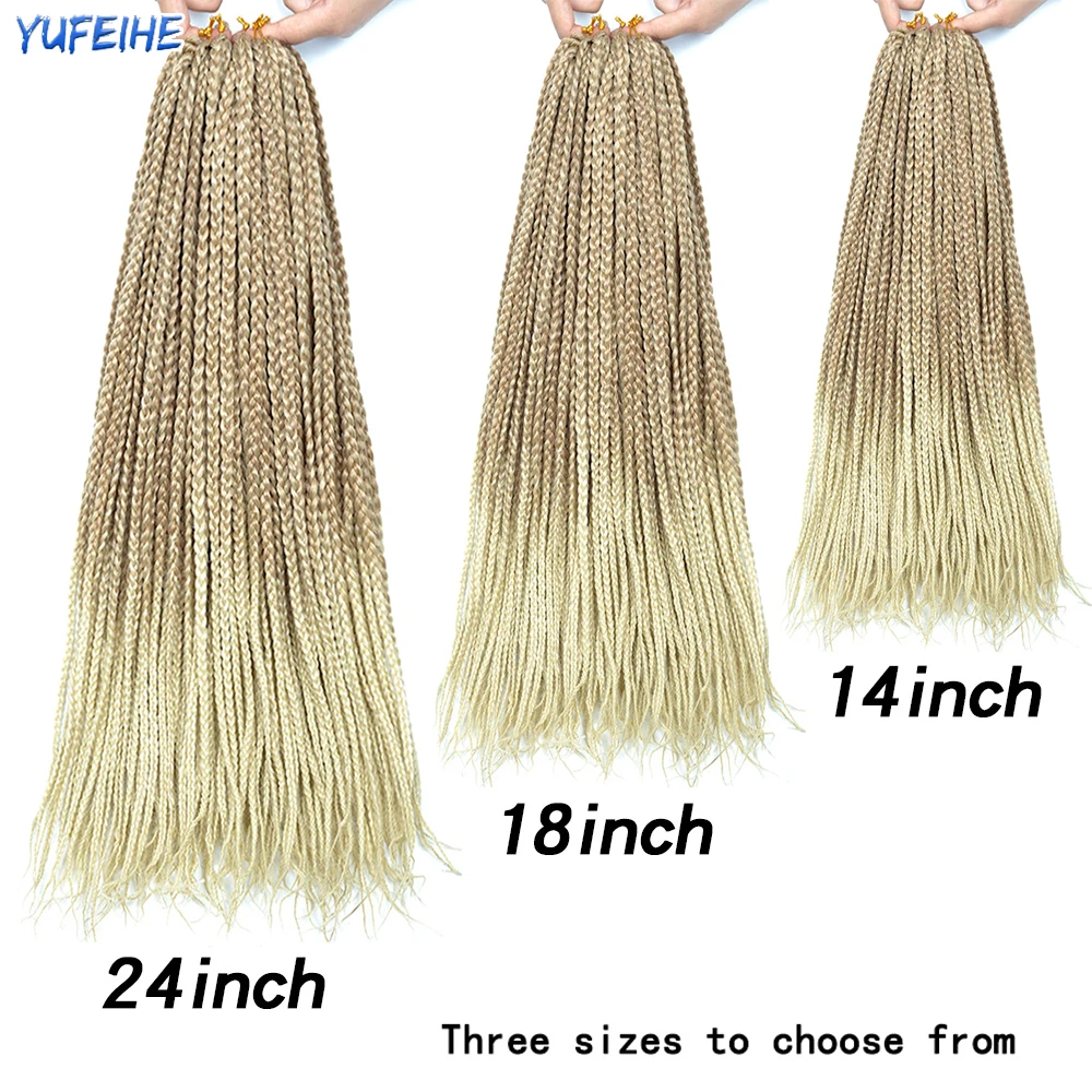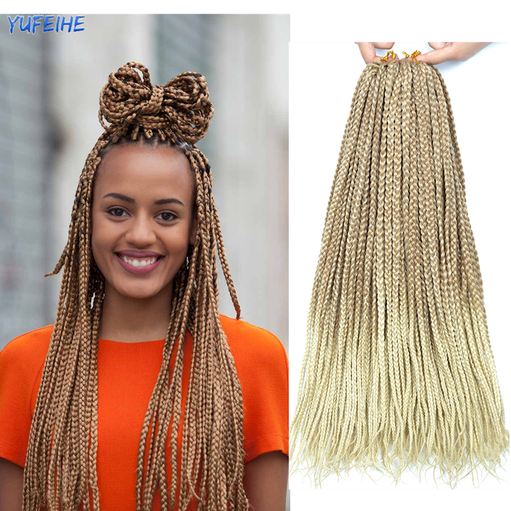 18 Inch Crochet Hair Ombre Box Braids Fake Hair Synthetic Braiding Hair Black Light Blonde For Women Kids Low Temperature Fiber
