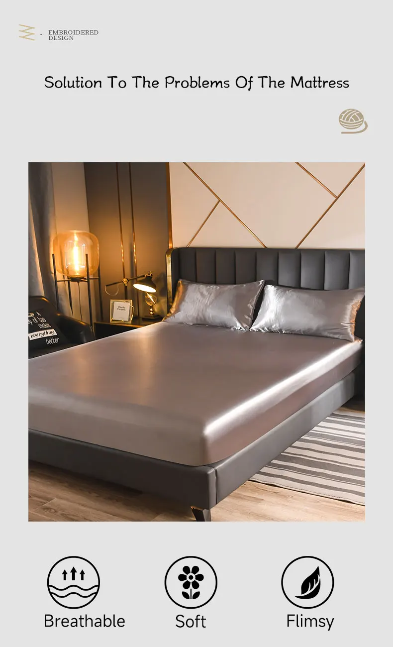 1PC Solid Color Satin Mattress Cover,Light Luxury,Dustproof,Soft, Breathable,Four Seasons Apply