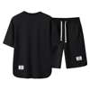 2 Pcs/Set Sportswear T-shirt Shorts Set Loose Solid Color Round Neck Short Sleeves Drawstring Elastic Waist Ice Silk Retro Men Sport Top Shorts Set