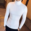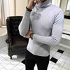 2022 Fall/Winter Men’s Turtleneck Sweater Fashion Striped Solid Color Warm Knitted Sweater Men Double Collar Slim Fit Sweaters