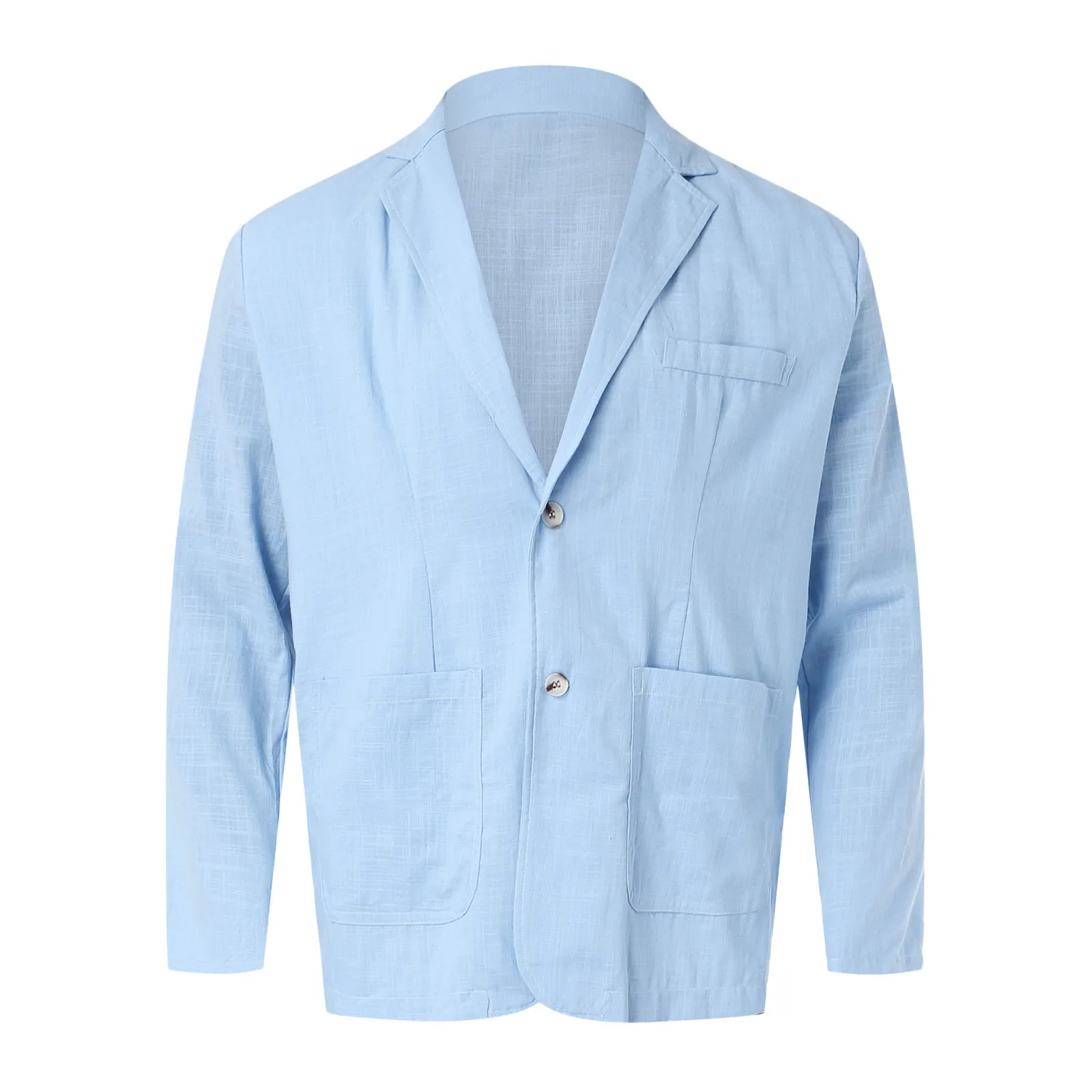 Mens Fashion Leisure Light And Solid Color Pockets Lapels Buttons Suits Jackets And Tops