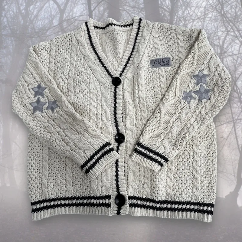 2024 Autumn Women Trend High Quality Loose Fitting Floral Embroidered Knitted Cardigan Y2k Regulai Fit Beige Cardigans Female