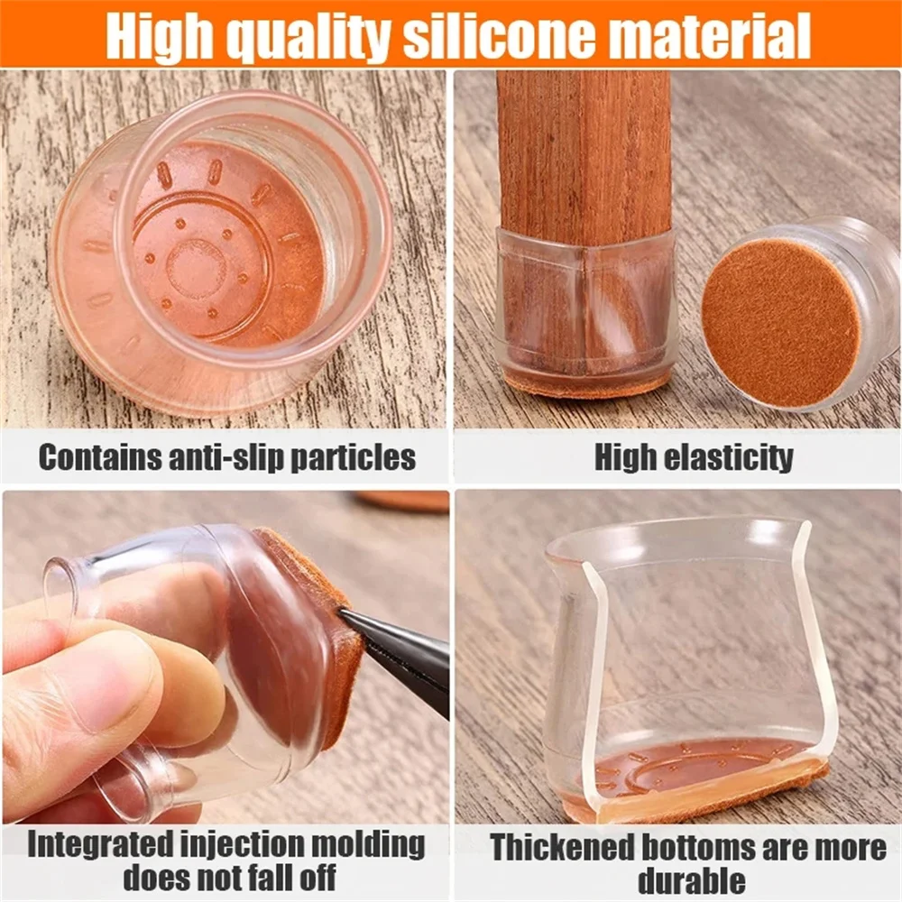 【Your floors stay looking beautiful!】Silicone Chair Leg Cover with felt pad, fit over your furniture legs, effectively protecting your hard surface and tile floors from scratching, effectively reduce noise and scratches caused by moving chairs or furniture, creating a quiet and comfortable living environment.