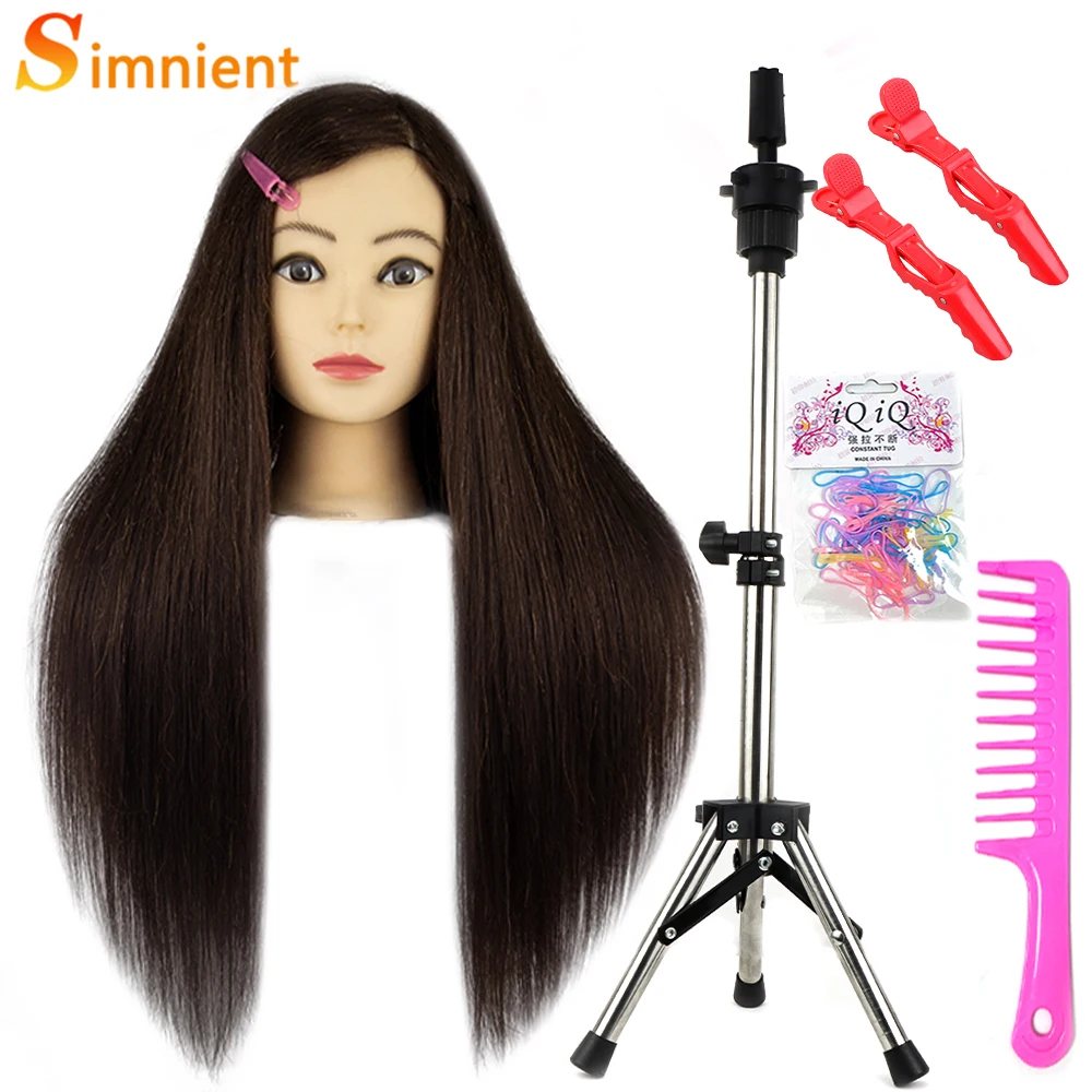 85%Real Hair Doll Head For Hairstyle Professional Training Head Kit Mannequin Head Styling To Practice Hot Curl Iron Straighten