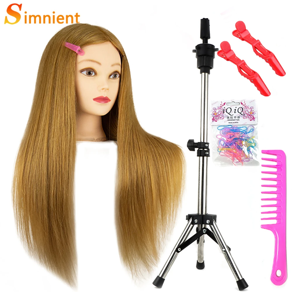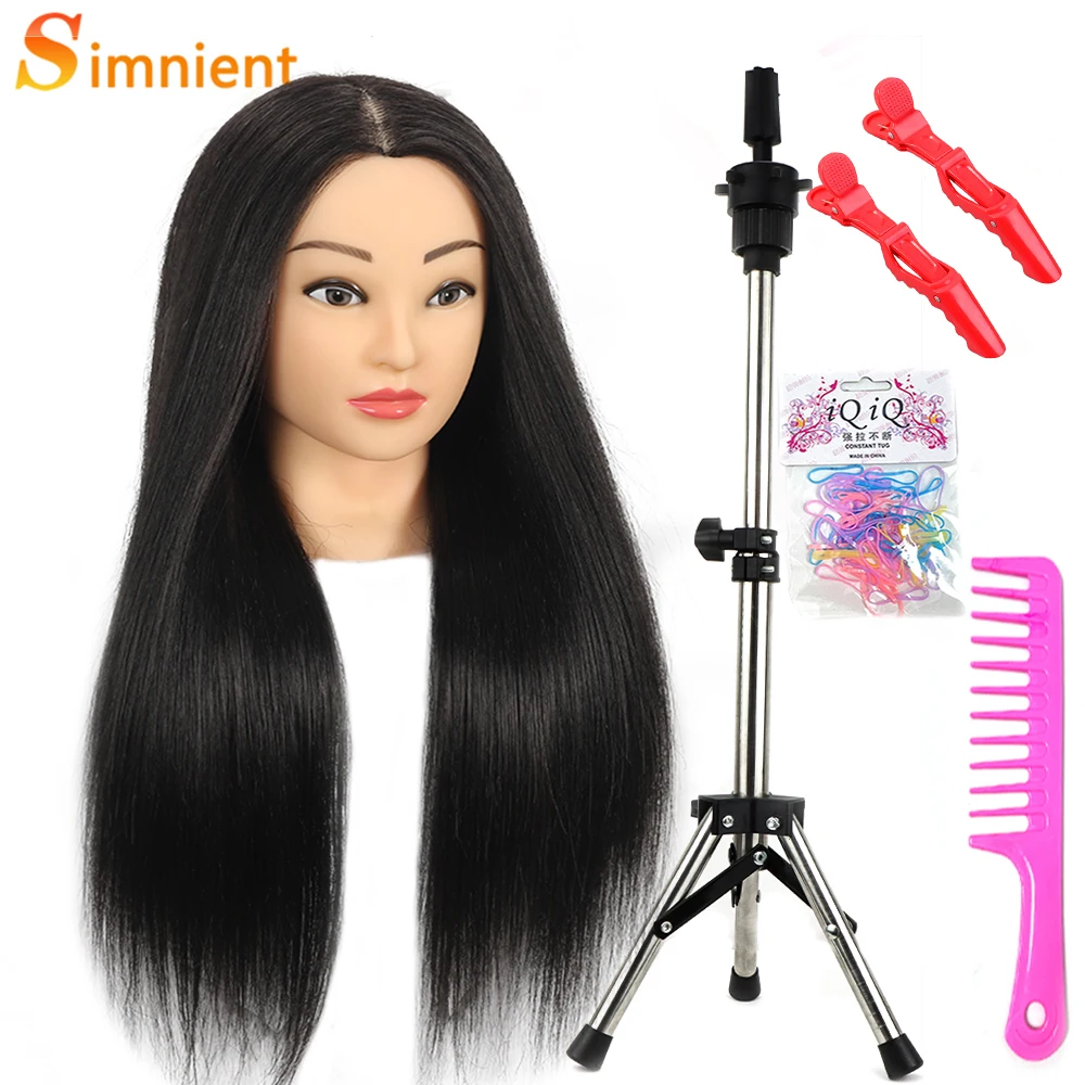3. Mannequin head and two professional hairpins, colored rubber bands, wide-tooth comb, 60cm height, triangle stand
