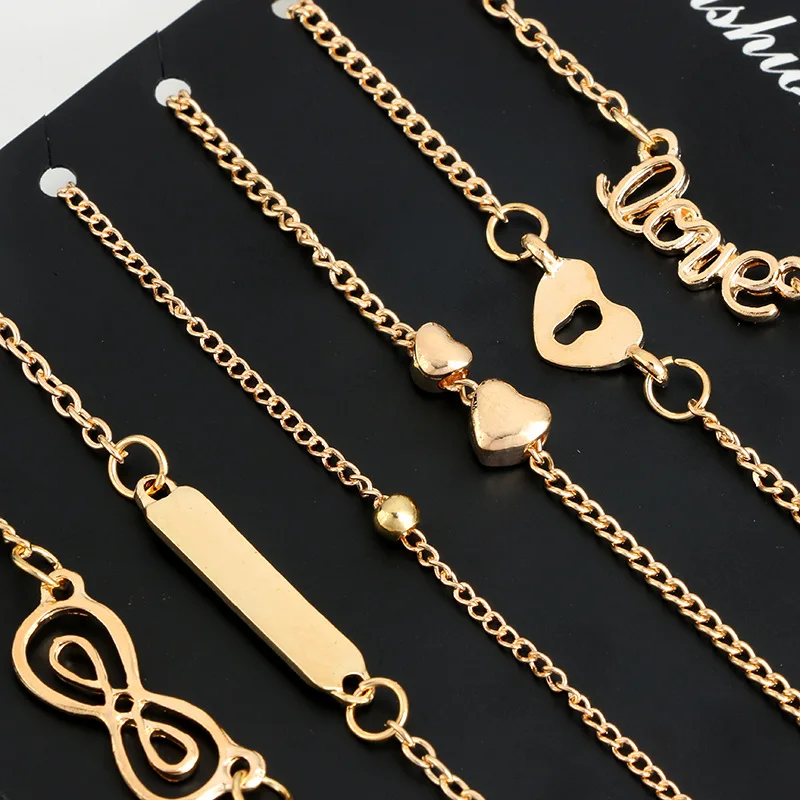 6pcs Trend Infinity 8 Bowknot Heart Key Charm Chain Bracelets & Bangles Minimalist Women Tiny Set Party Jewelry
