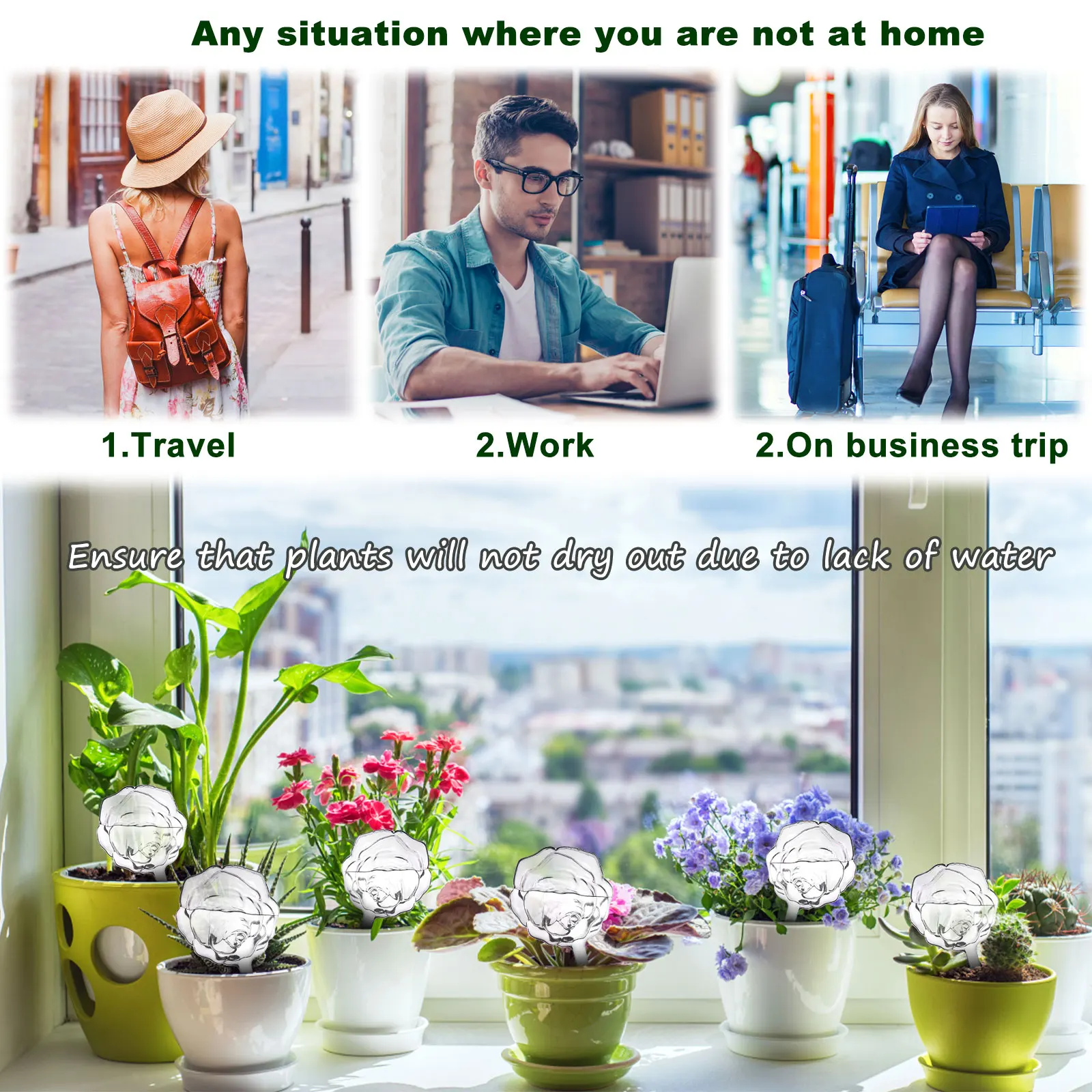 Cute Animal Design : These automatic watering bulbs are designed in the rose flower shapes, size in 9.8×4.1 inch/25×10.5 cm, the capacity is about 150 ml. Exquisite rose shape watering globes can not only add water but also perfectly decorate your plants.