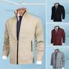 Autumn Winter Male Knitting Cardigan Coat Stand Collar Long Sleeve Side Pockets Zipper Placket Ribbed Cuffs Knitting Coat