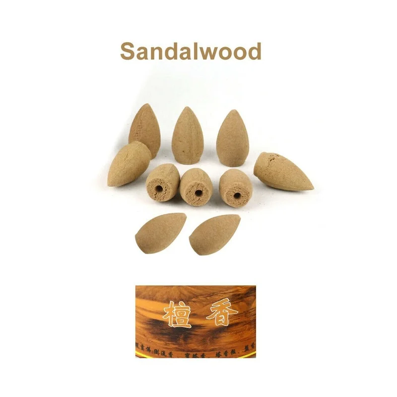 Sandalwood, some customers feedback that this scent no smell, old sandalwood is a replace, it’s smell will heavier than sandalwood, welcome to email us to telling your feeling, we will carry on improve our cones. Thank you !