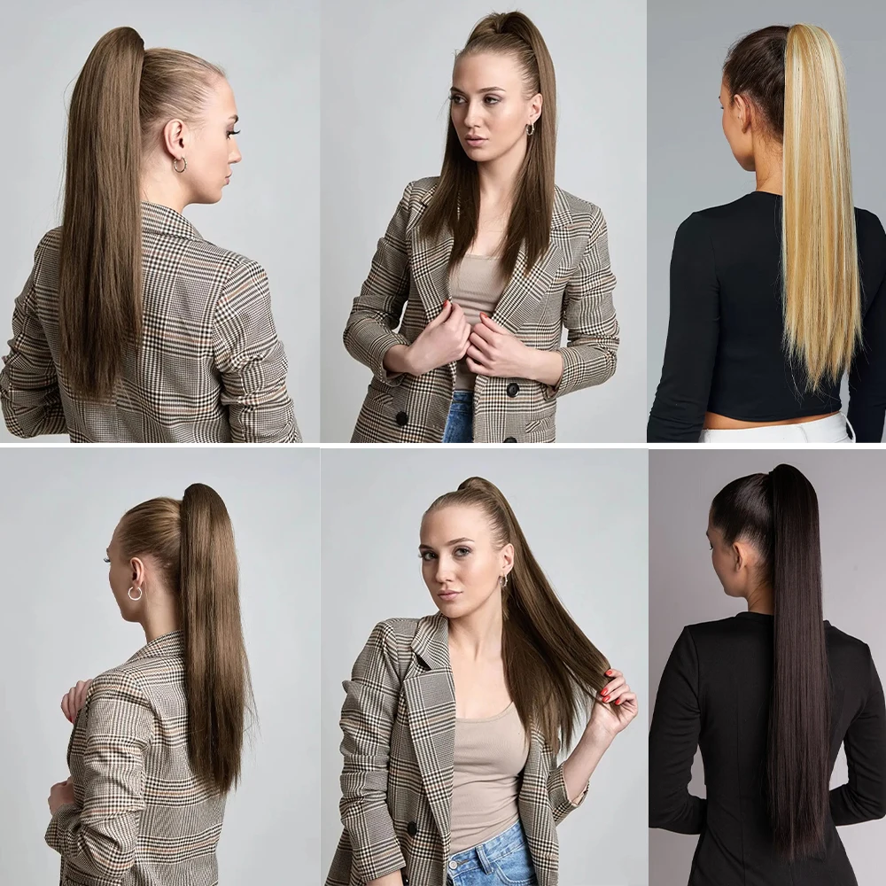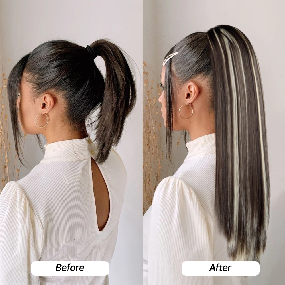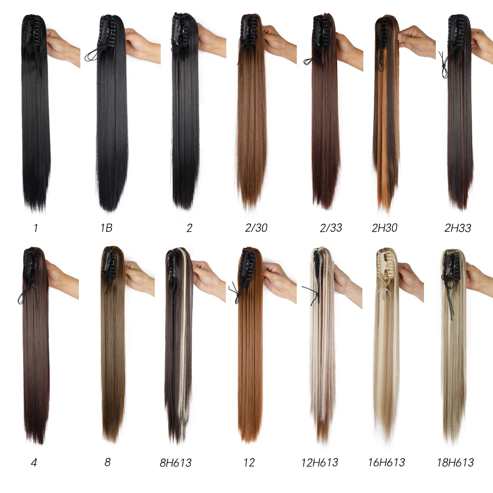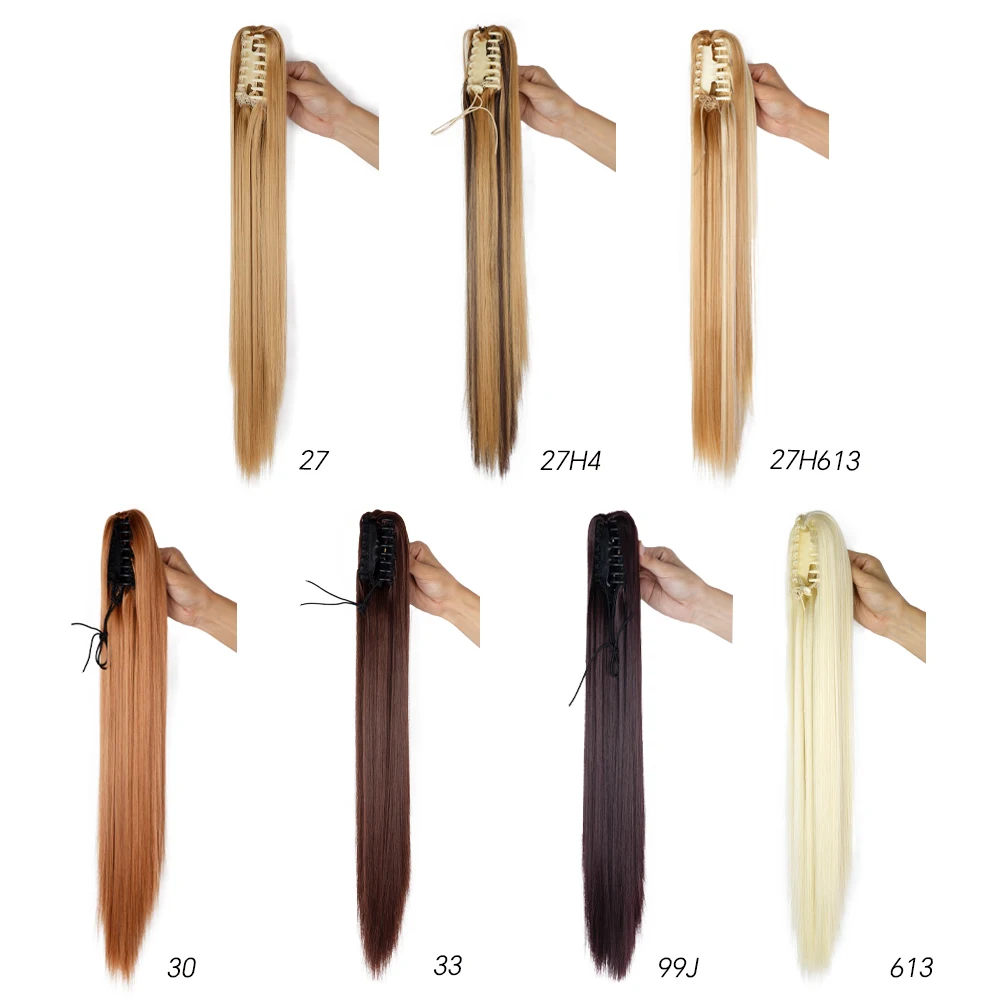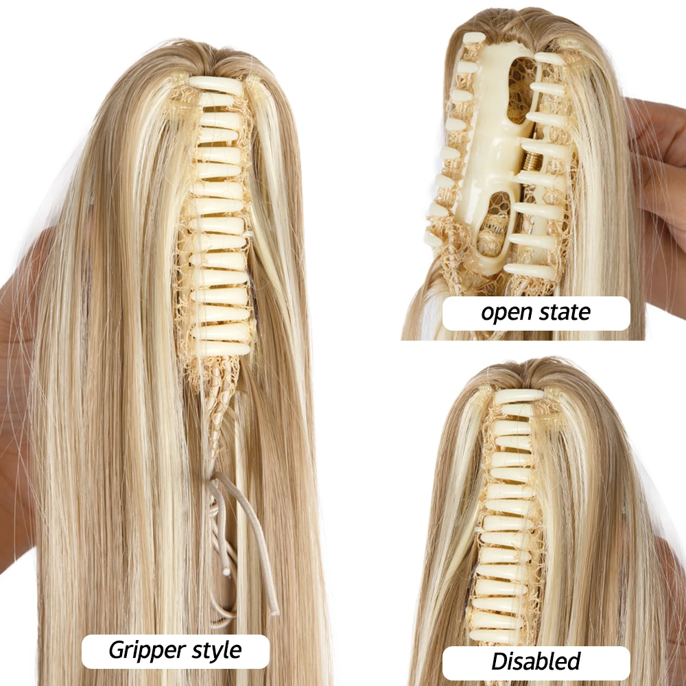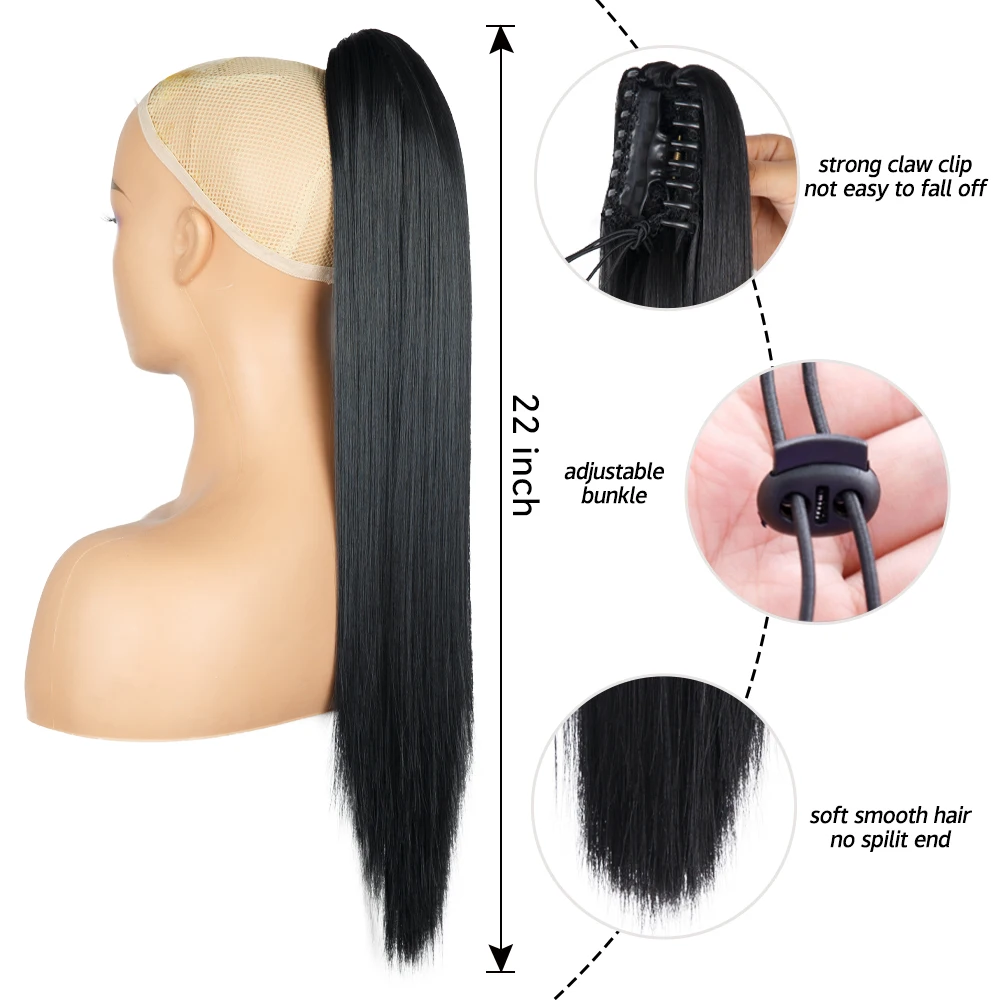 Black Blonde Claw Clip In Ponytail Hair Extension Synthetic Straight 22″ Jaw Pony Tail Hairpiece For Women Girl Party Use 150G