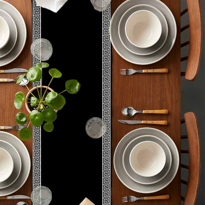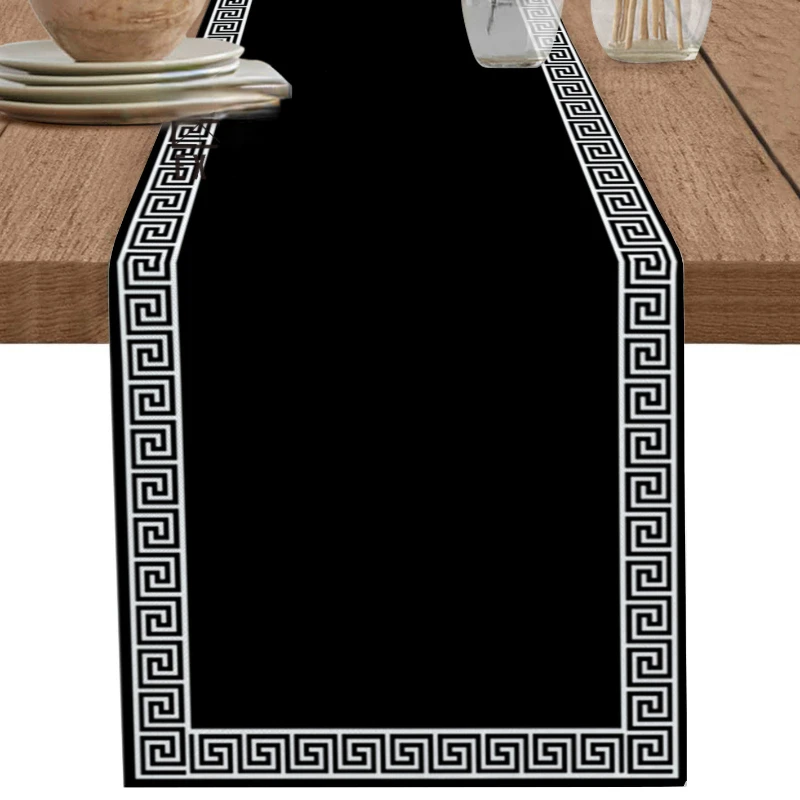 Black Retro Geometric Design Pattern Table Runner Restaurant Decoration Table Runner Wedding Holiday Party Table Accessories