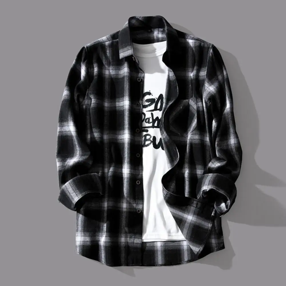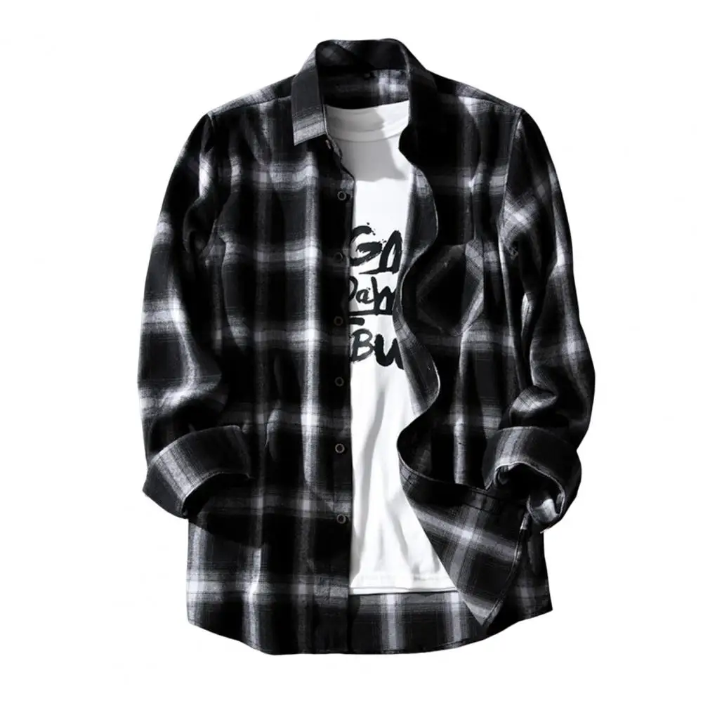 Black White Plaid Men Shirt Spring Autumn Casual Shirt Long Sleeve Turn-down Collar Single-breasted Men Jacket camisa masculina