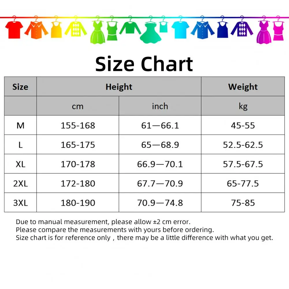 Size: 3XL, Suggested Height: 180cm-190cm/70.9″-74.8″, Suggested Weight: 75kg-85kg (Approx.)