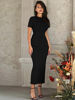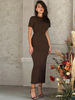 BOOFEENAA Back Tie Short Sleeve Long Dresses for Women Clothing Casual Style Ribbed Knit Bodycon Dress Spring 2024 C70-CZ32