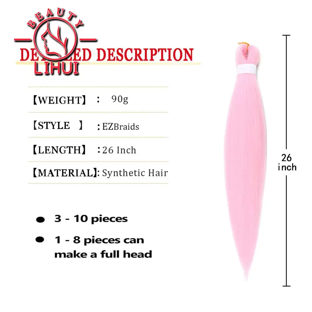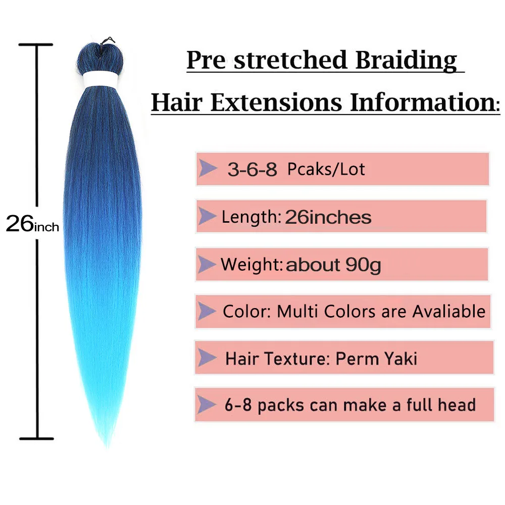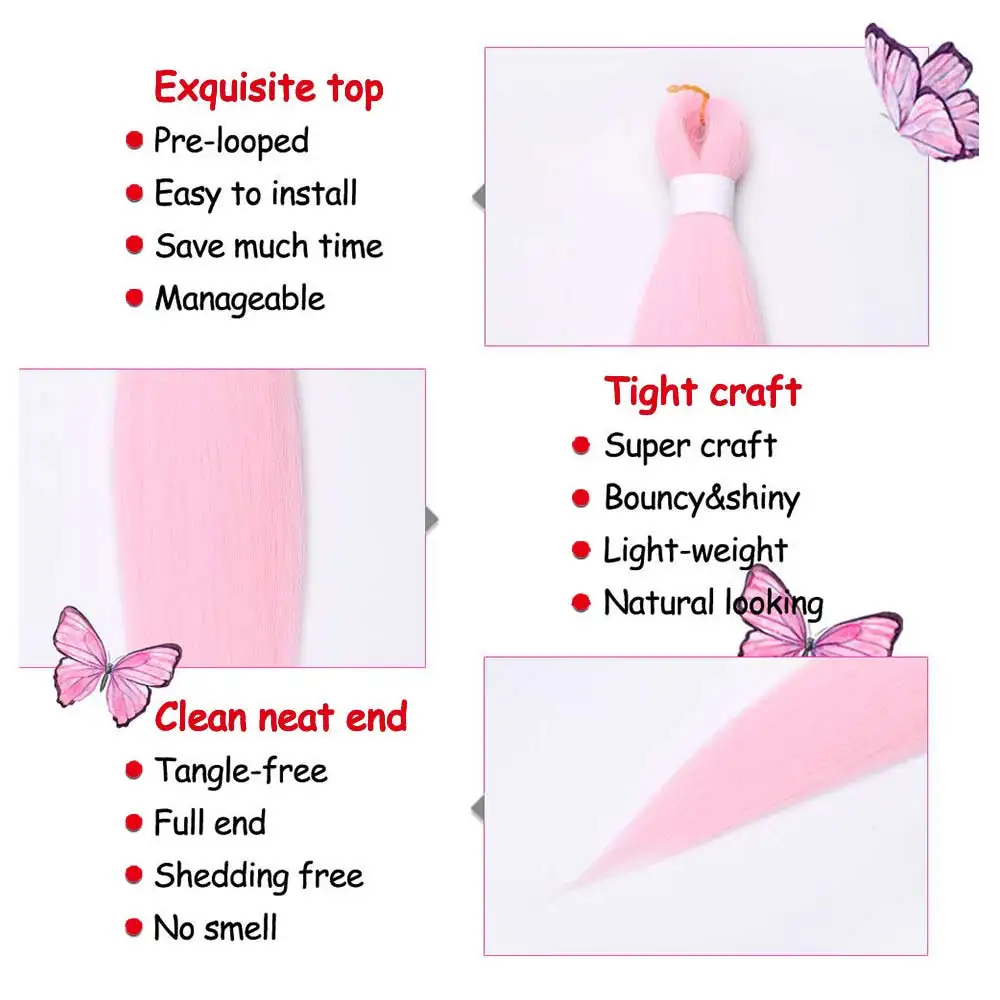Braiding Hair Pre-stretched Synthetic Jumbo Braiding Hair Extensions 26Inch 90G Red Pink Kanekalon Hair for Afro Crochet Braids