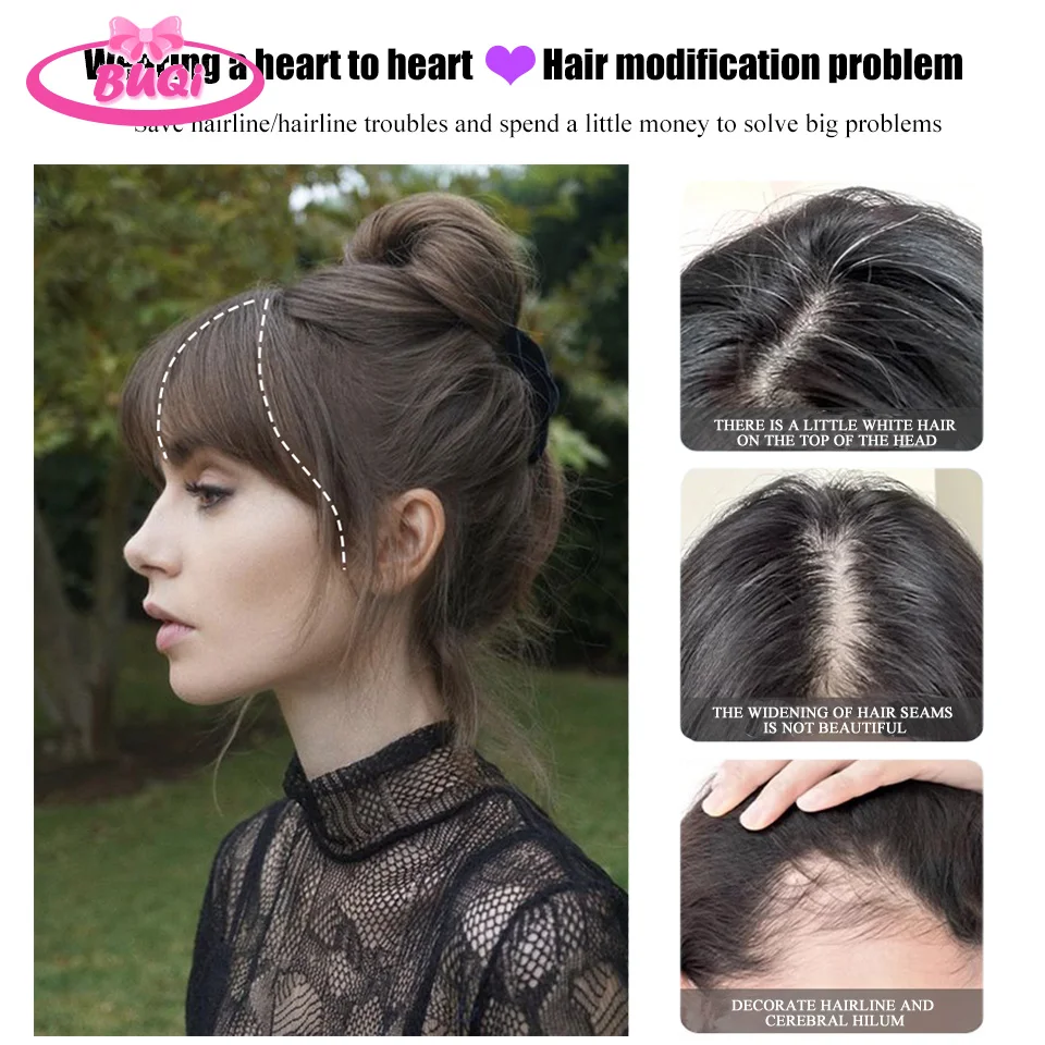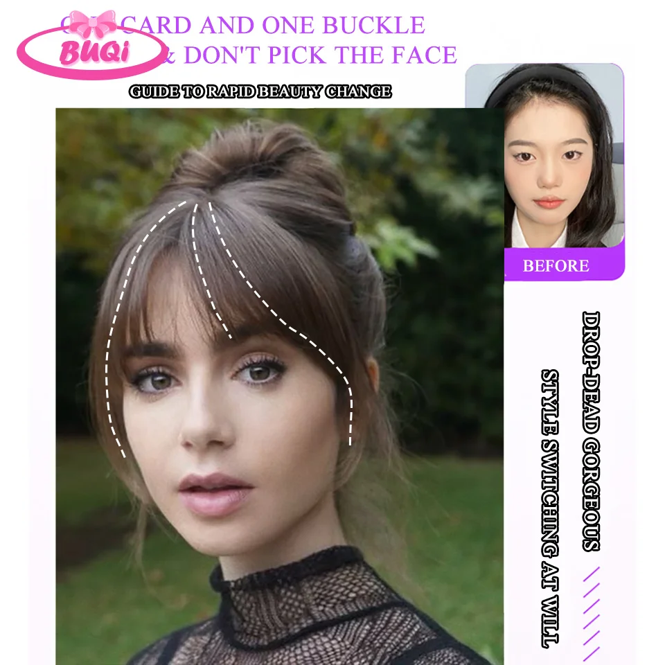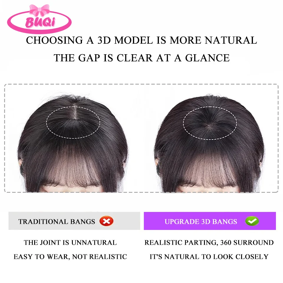BUQI Synthetic 3D Bangs Clip-In Hair Extension Natural Hair Fake Fringe Topper Bangs Invisible Clourse Hairpieces For Women