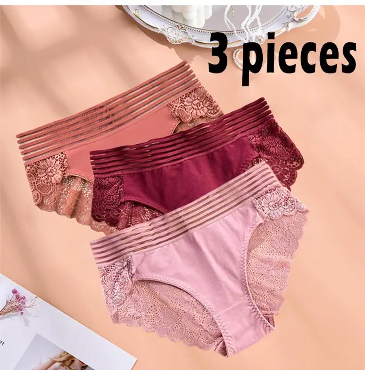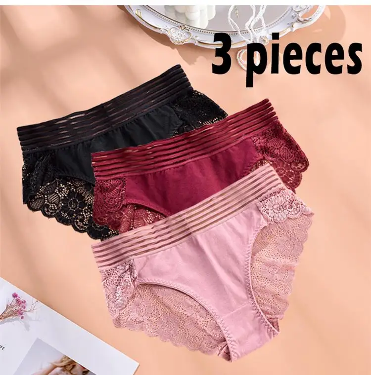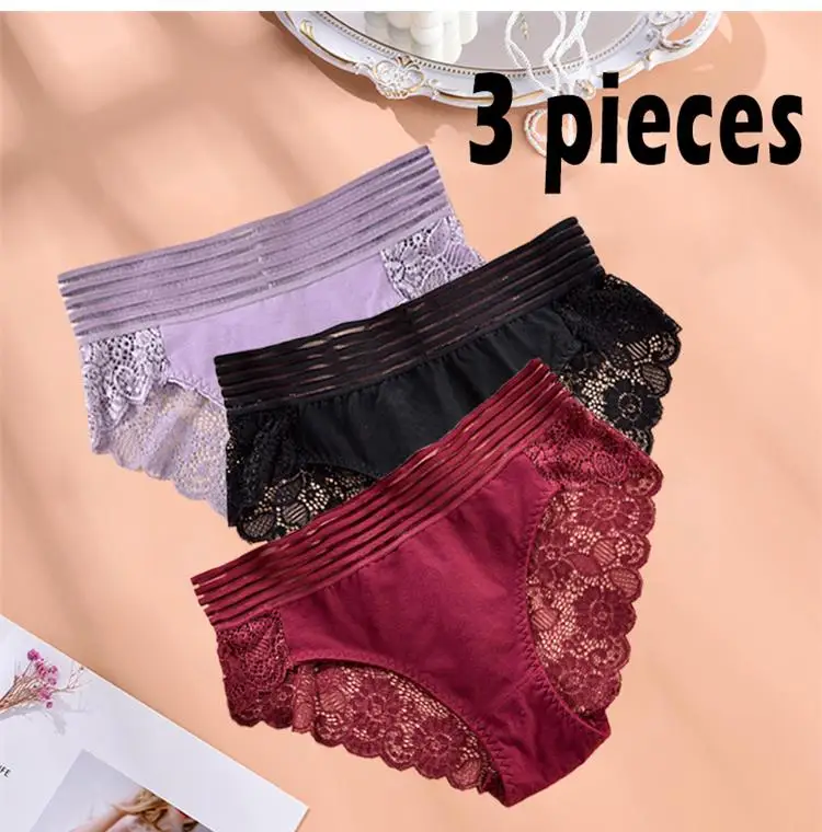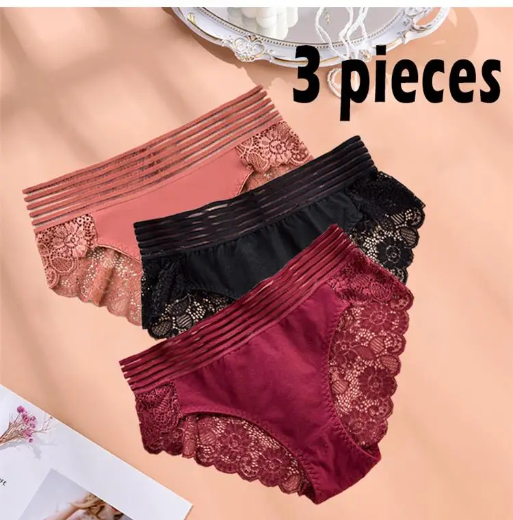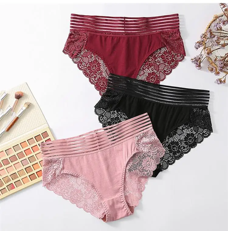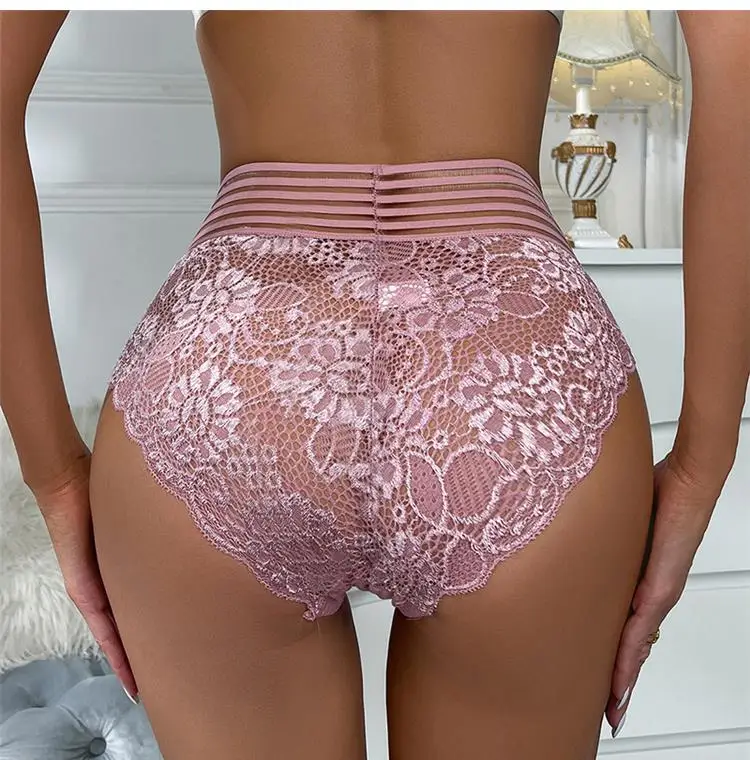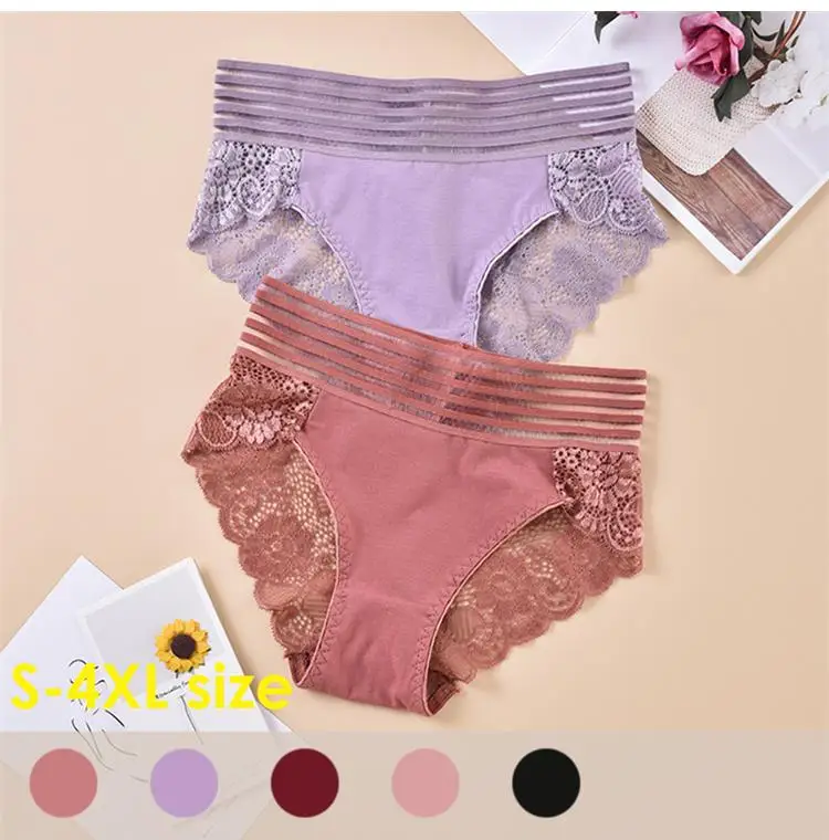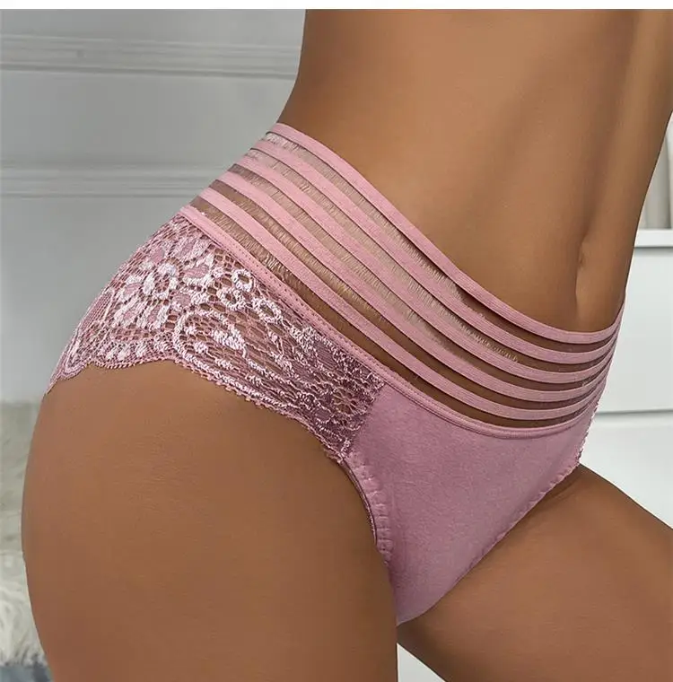 C.New S S-4XL SexyWomen Underwear Mid Waist Embroidered Temptation Panties Breathable Hollow Comfortable Lingerie Cool Lace