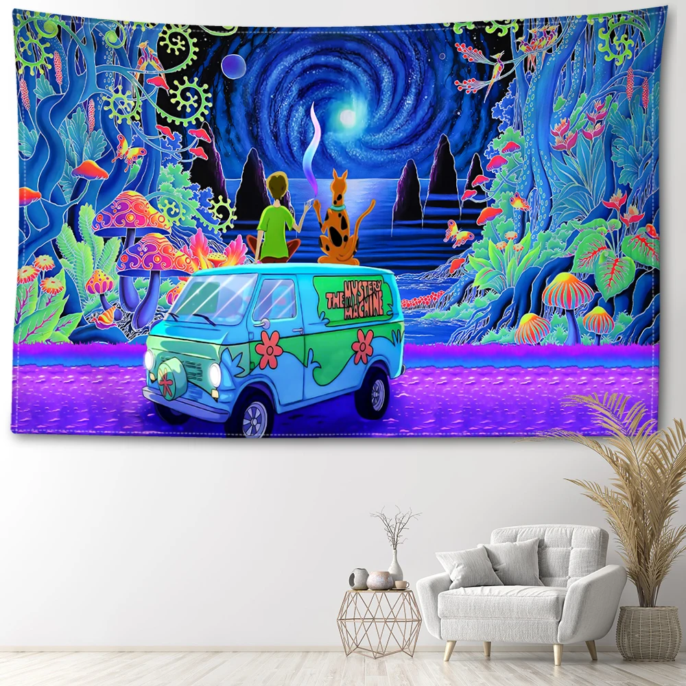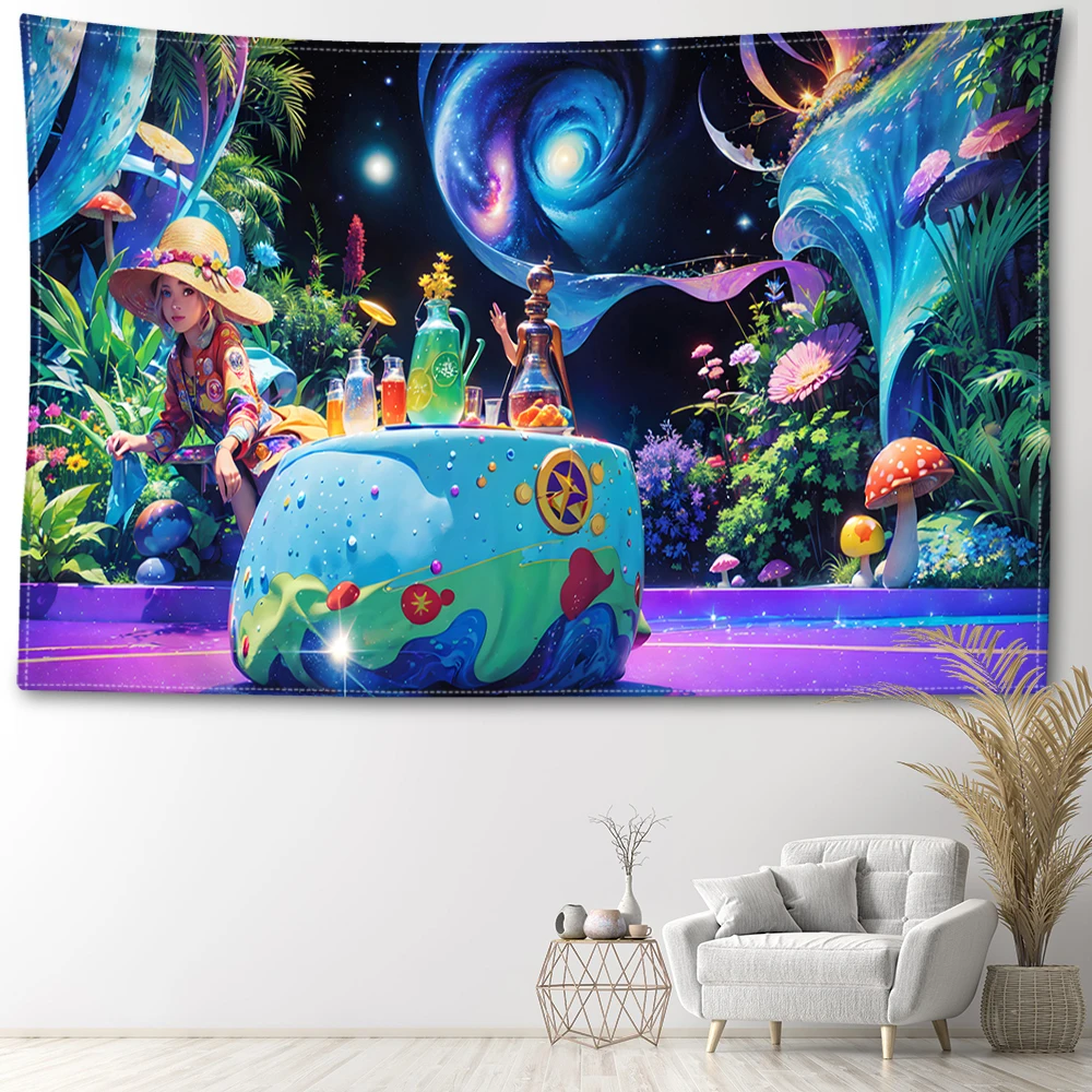 Cartoon Mushroom Forest Tapestry Wall Hanging Mysterious Simple Abstract Art Landscape Bohemian Bedroom Living Room Home Decor