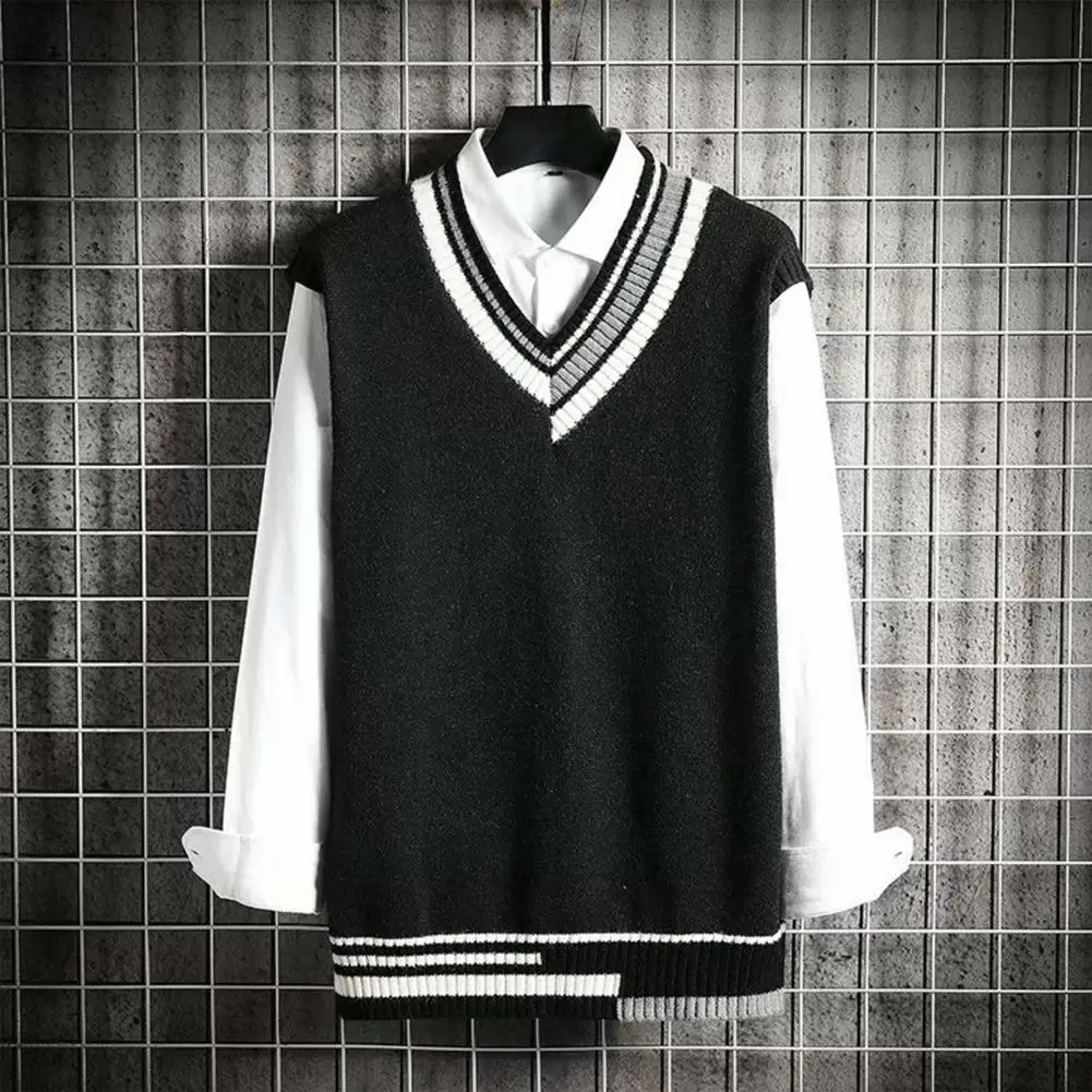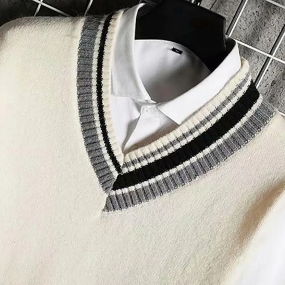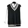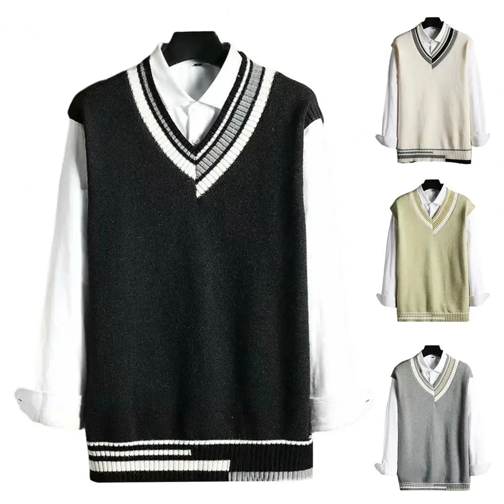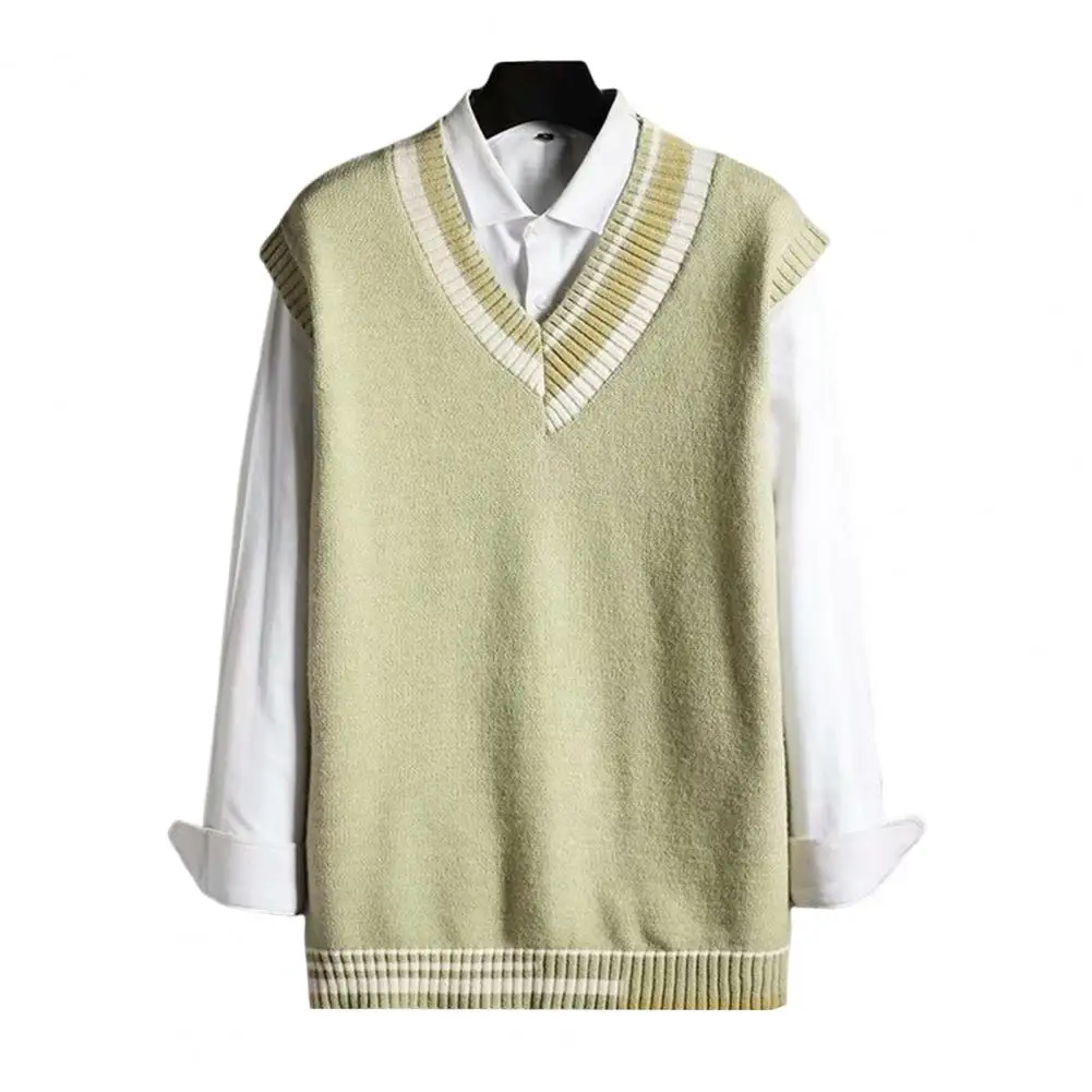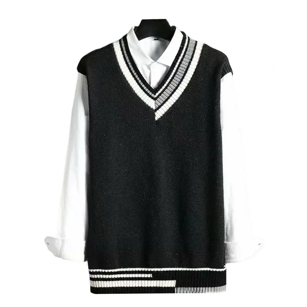 Chic Sweater Knitting Winter Sweater Sleeveless Cold-proof Contrast Color Soft Winter Vest Sweater