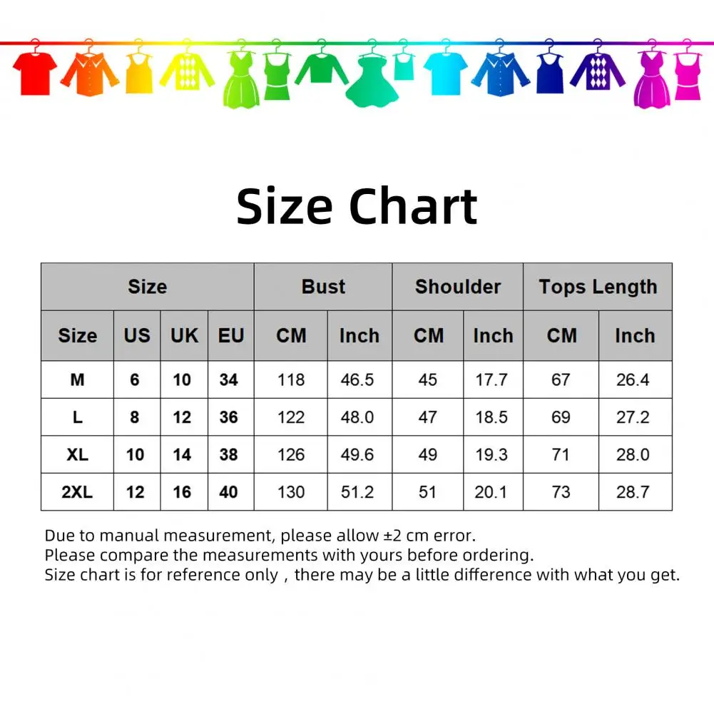 Size: 2XL, Bust: 130cm/51.2″, Shoulder: 51cm/20.1″, Length: 73cm/28.7″ (Approx.)