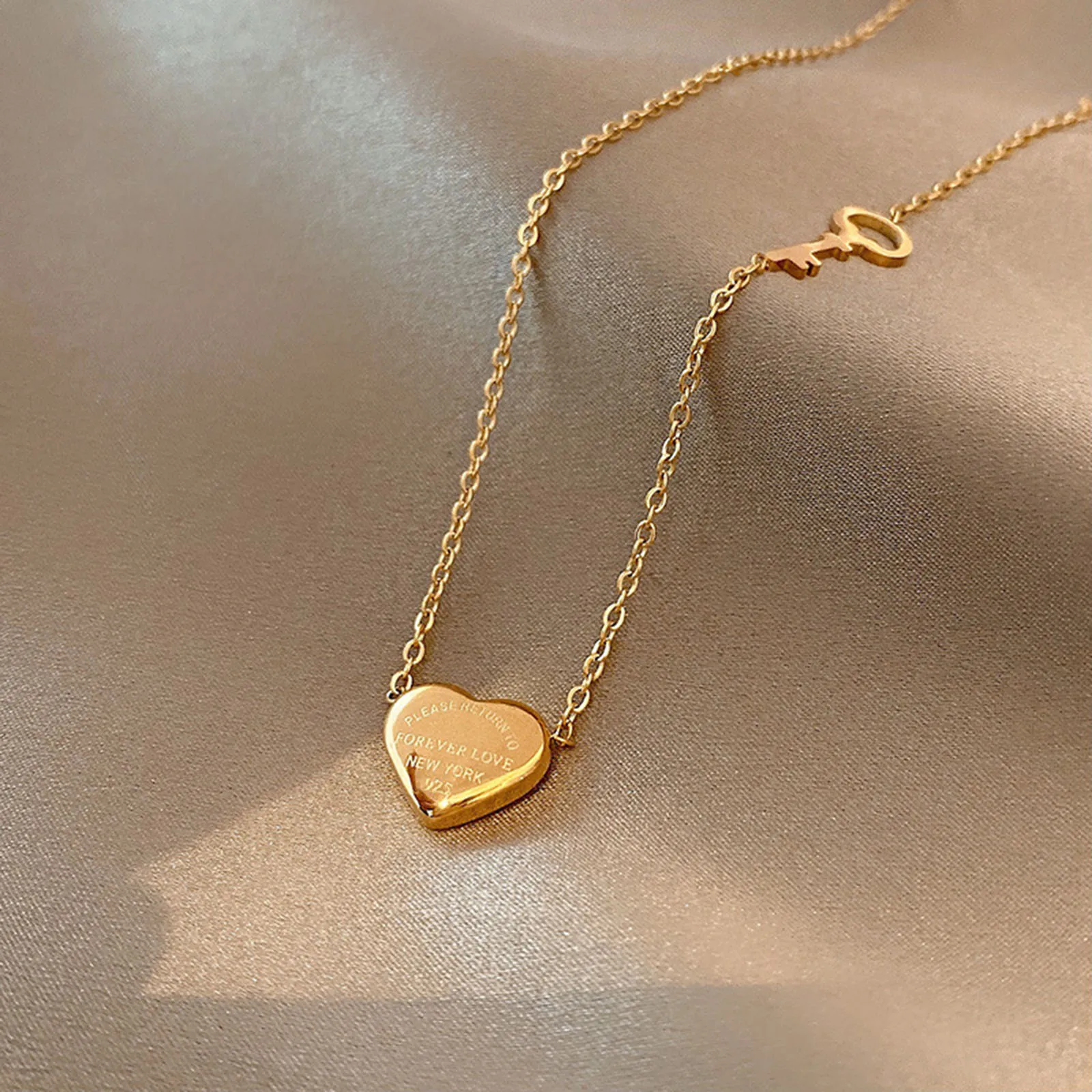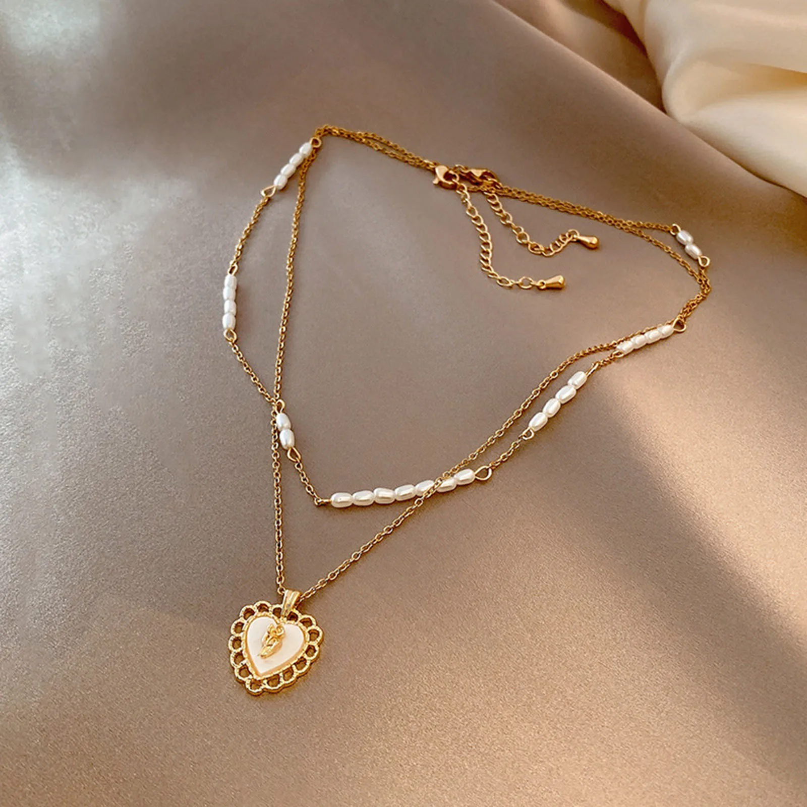 Classic Gold Color Stainless Steel Necklace For Women Jewelry Limited Pearl Beads Heart Pendant Necklace Birthday Gift