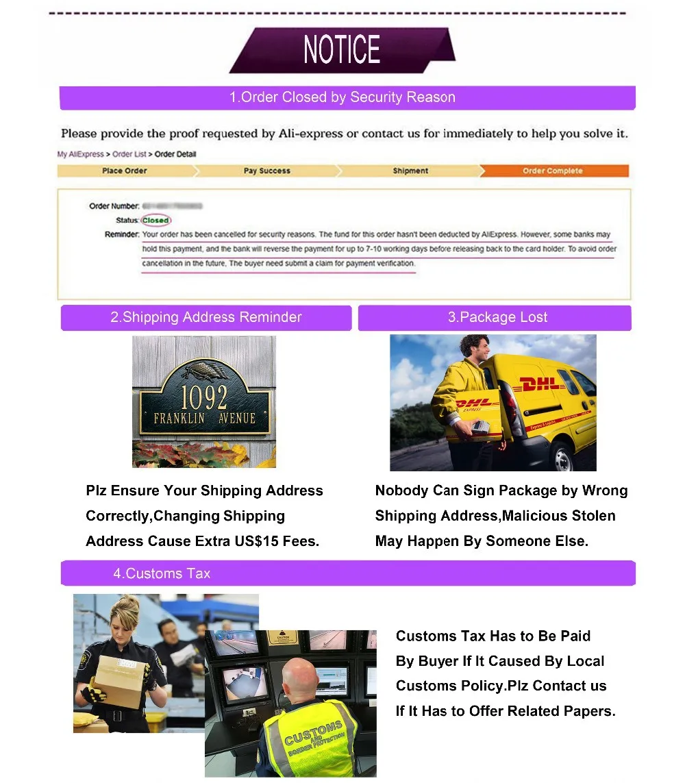 We are not responsible for any custom fees once the items have been shipped. By purchasing our products, you consent that one or more packages may be shipped to you and may get custom fees when they arrive to your country.