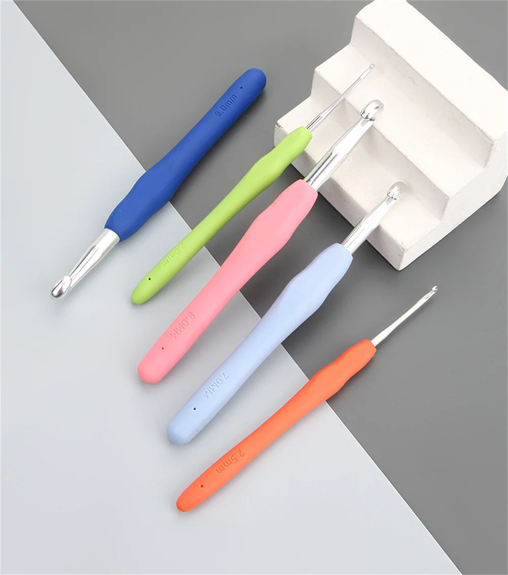 1. Colored Aluminum Oxide, Single-head Crochet Needle, Durable Metal Material, Easy To Use 2. Smooth Hook Head, Easy To Enter The Thread For Crochet, Moderate Length Of Crochet Needle, And The Finished Product Is Neat And Beautiful 3. Soft Rubber Handle, Non-slip And Durable, Not Tiring For Hands, Conforms To Strength Design, Comfortable Grip, Easy Crochet 4. Complete Specifications, Crochet Hook Thickness 2.5-5MM, Length About 13.5CM, Can Meet Daily Household Knitting Needs 5. Smooth Hook Head, No Burrs, Easy Thread Entry 6. Optimum Material, Aluminum Oxide Coating, Not Easy To Fade 7. Non-slip Handle, Clear Numbers, Complete Specifications