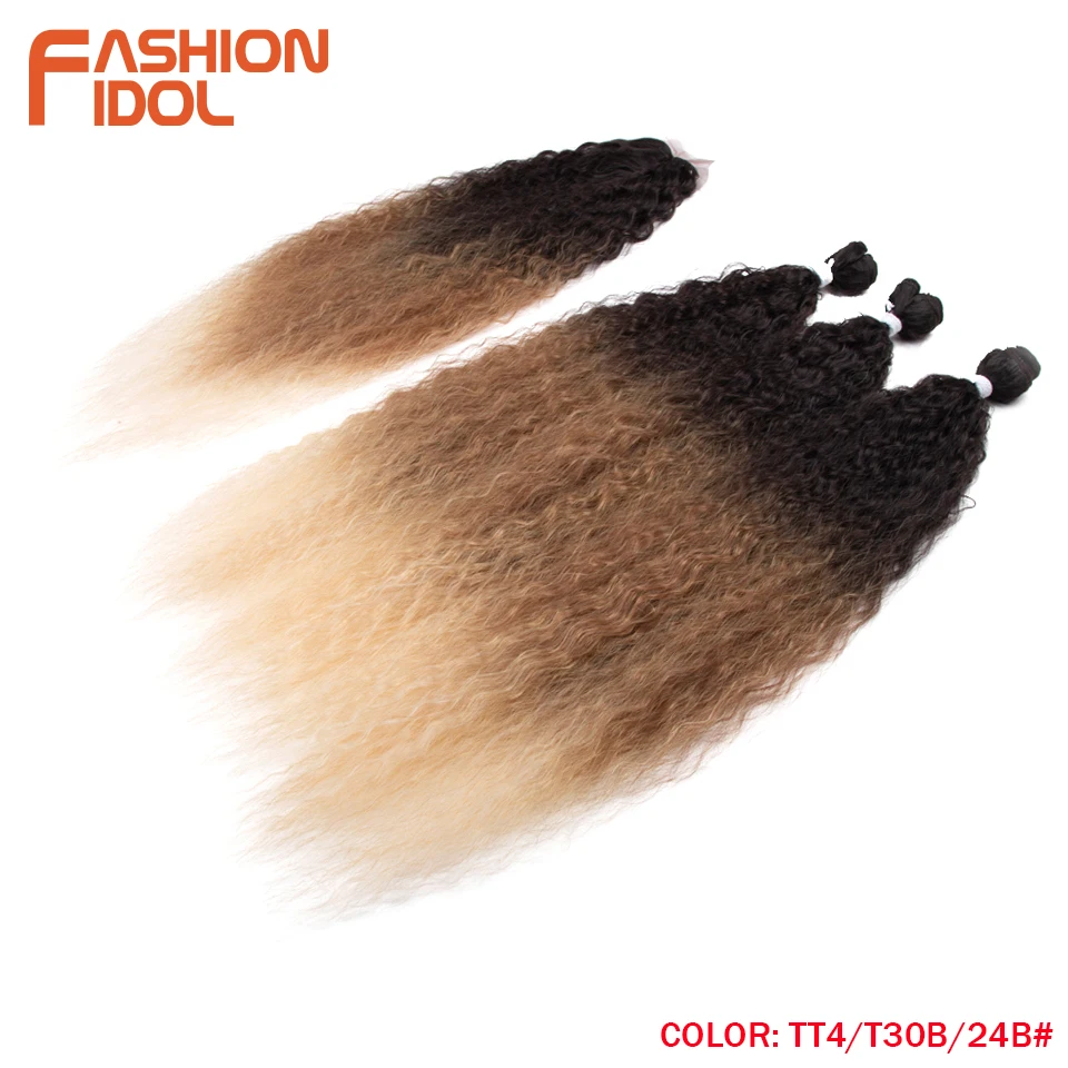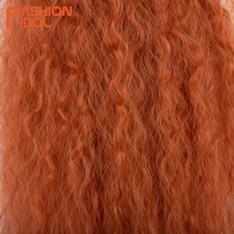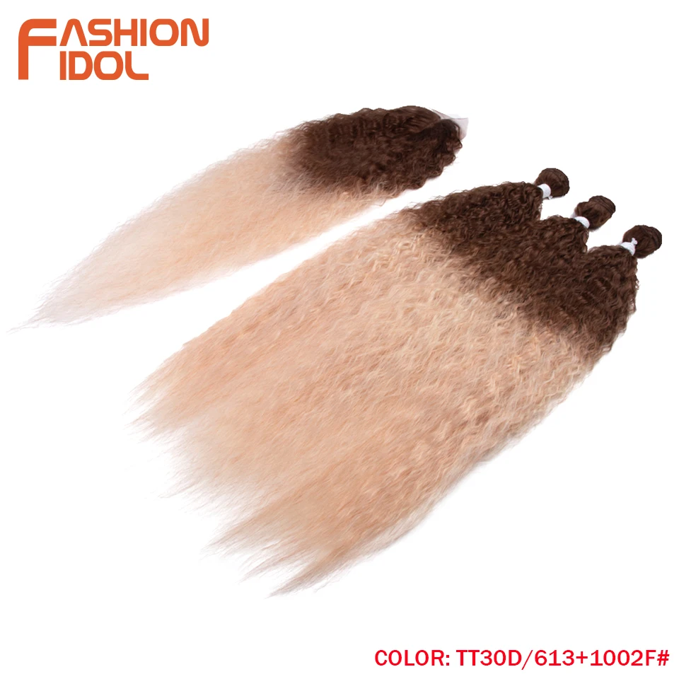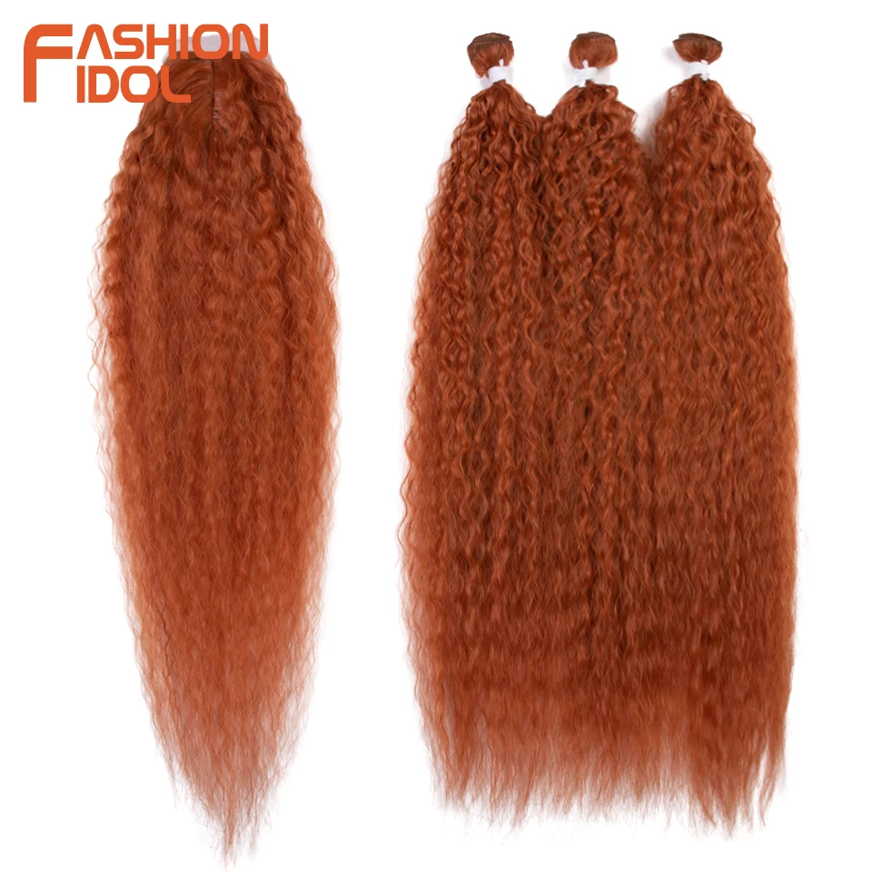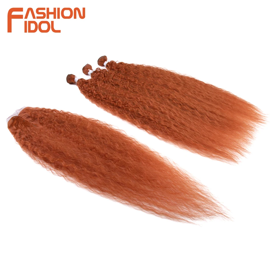 FASHION IDOL Afro Kinky Curly Hair Bundles With Closure Synthetic Hair 30 Inch Ombre Orange Heat Resistant Fiber Hair Extensions