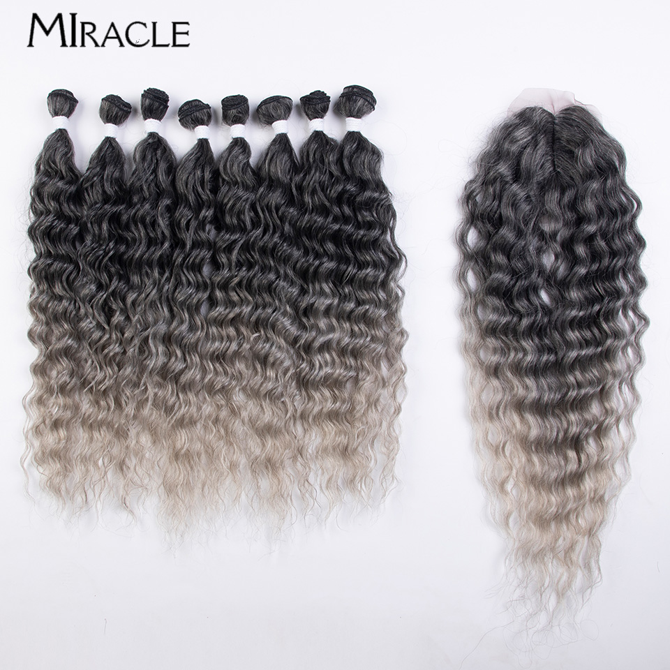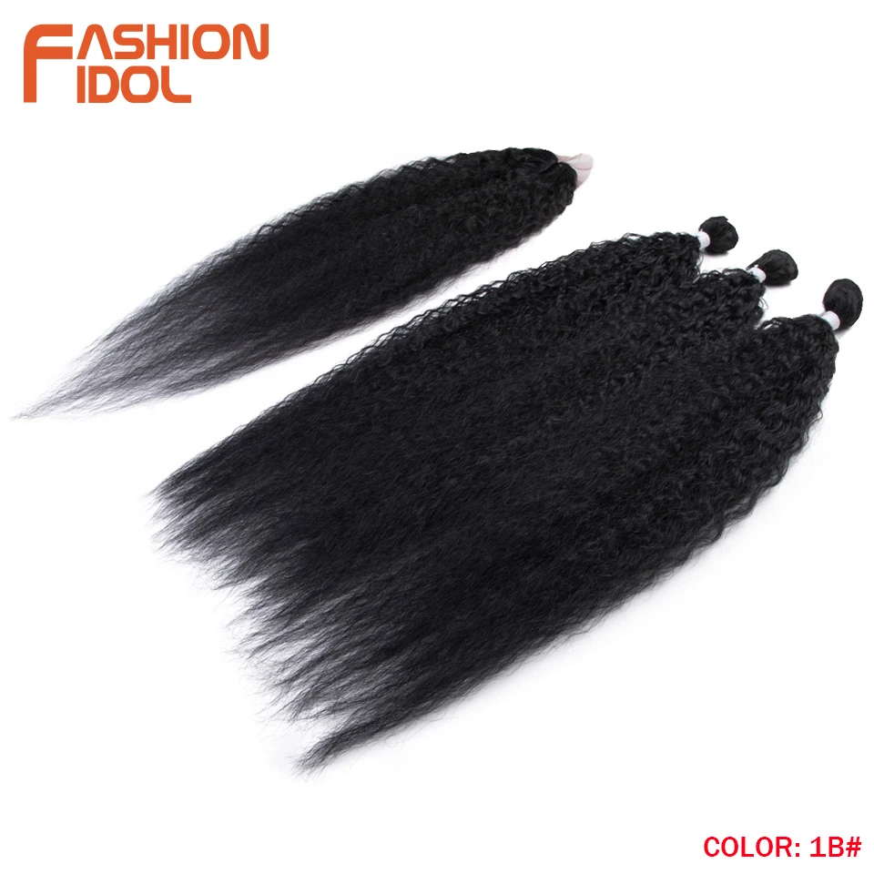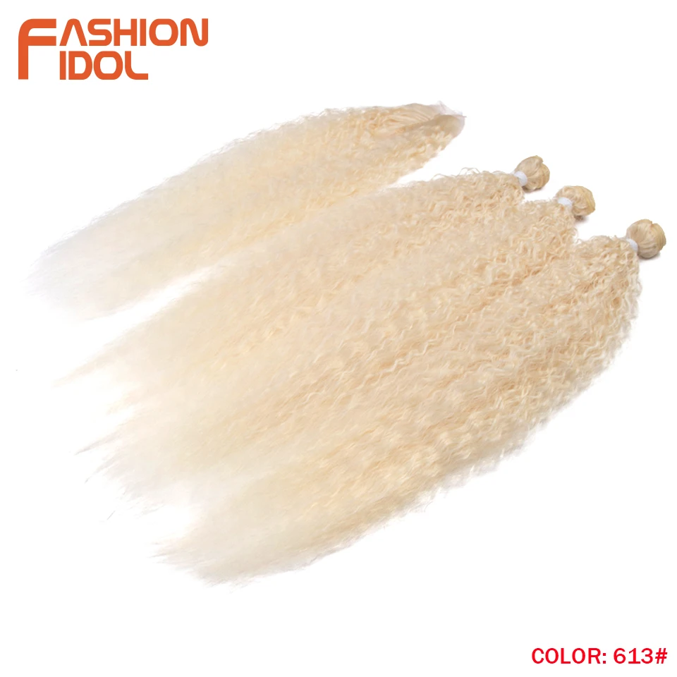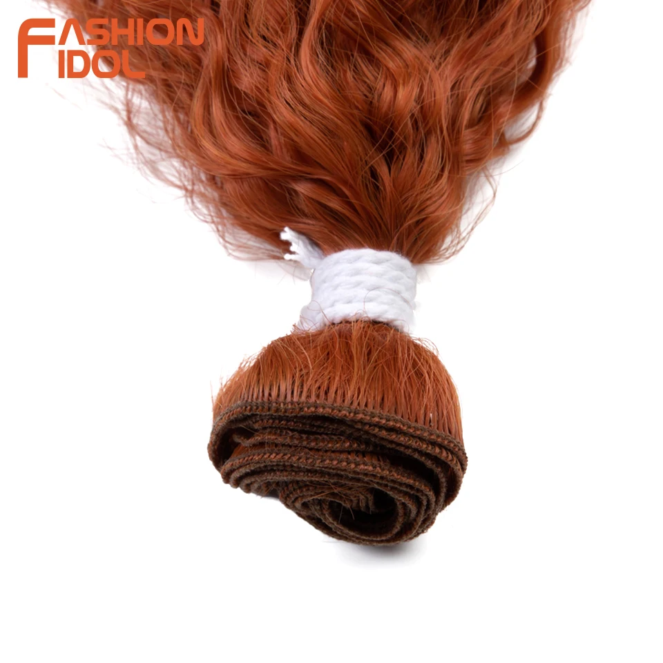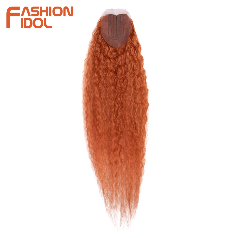 FASHION IDOL Afro Kinky Curly Hair Bundles With Closure Synthetic Hair 30 Inch Ombre Orange Heat Resistant Fiber Hair Extensions