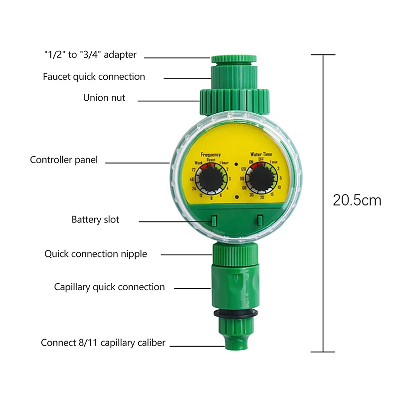 * Set Time: The required time can be designed by rotating the timing button and the time range can only be measured in minutes, such as 1-120 minutes. You can freely control the watering time.