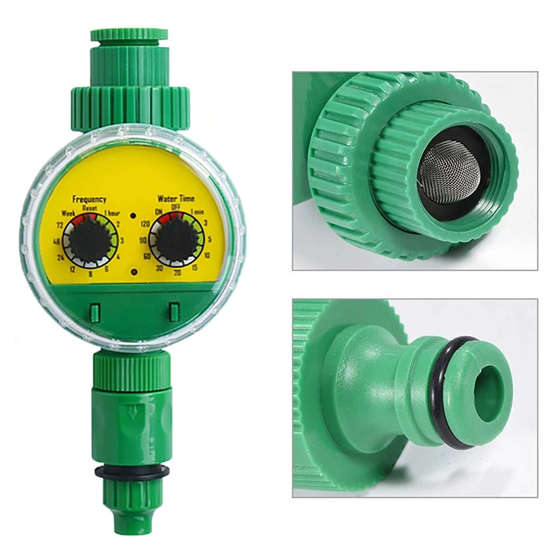 • Automatic Watering:The timer automatically turns on the water hose, making it easy to water your plants without having to lift the hose yourself.