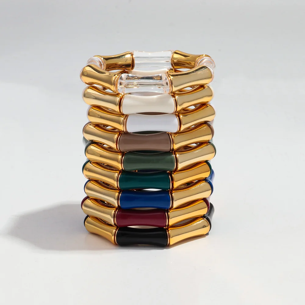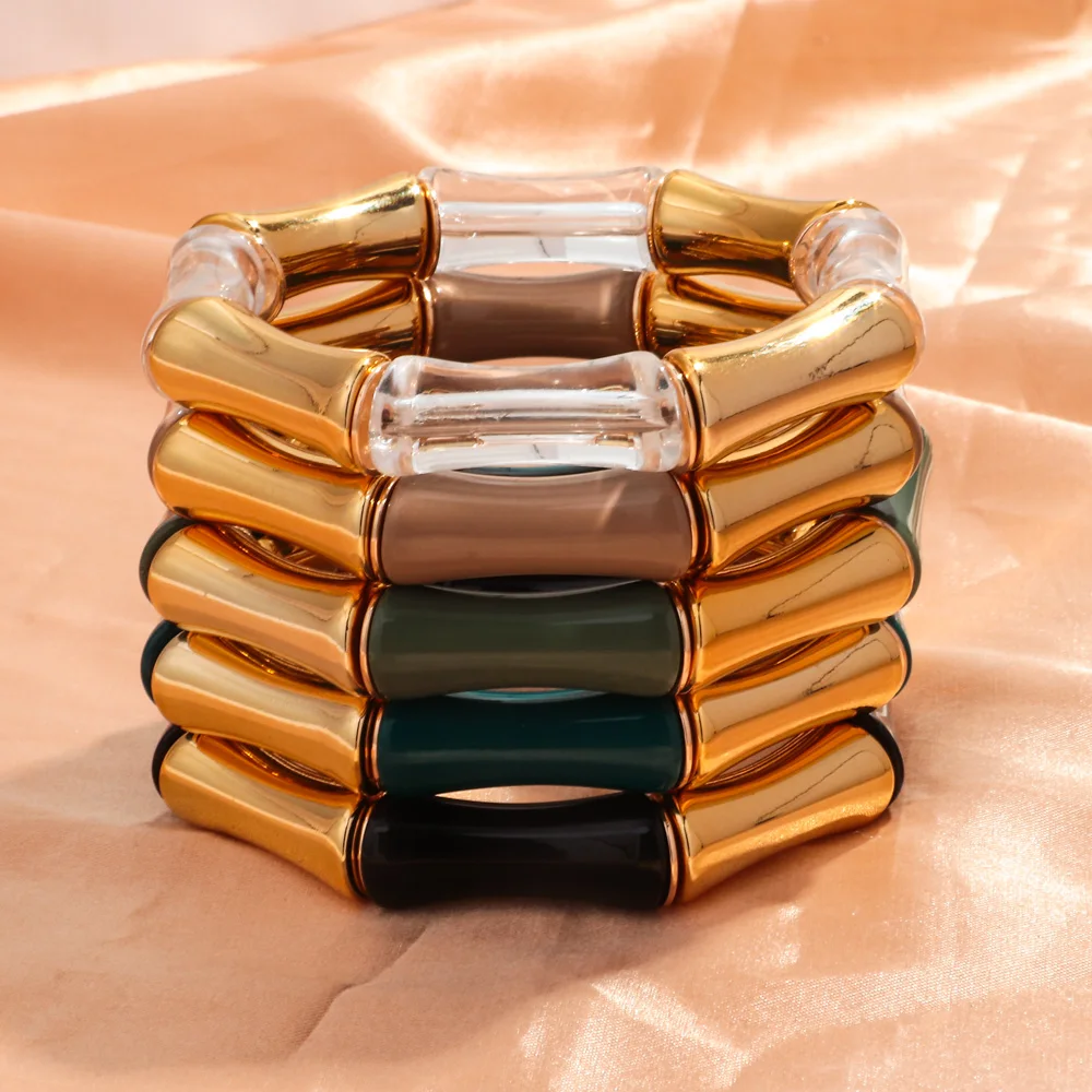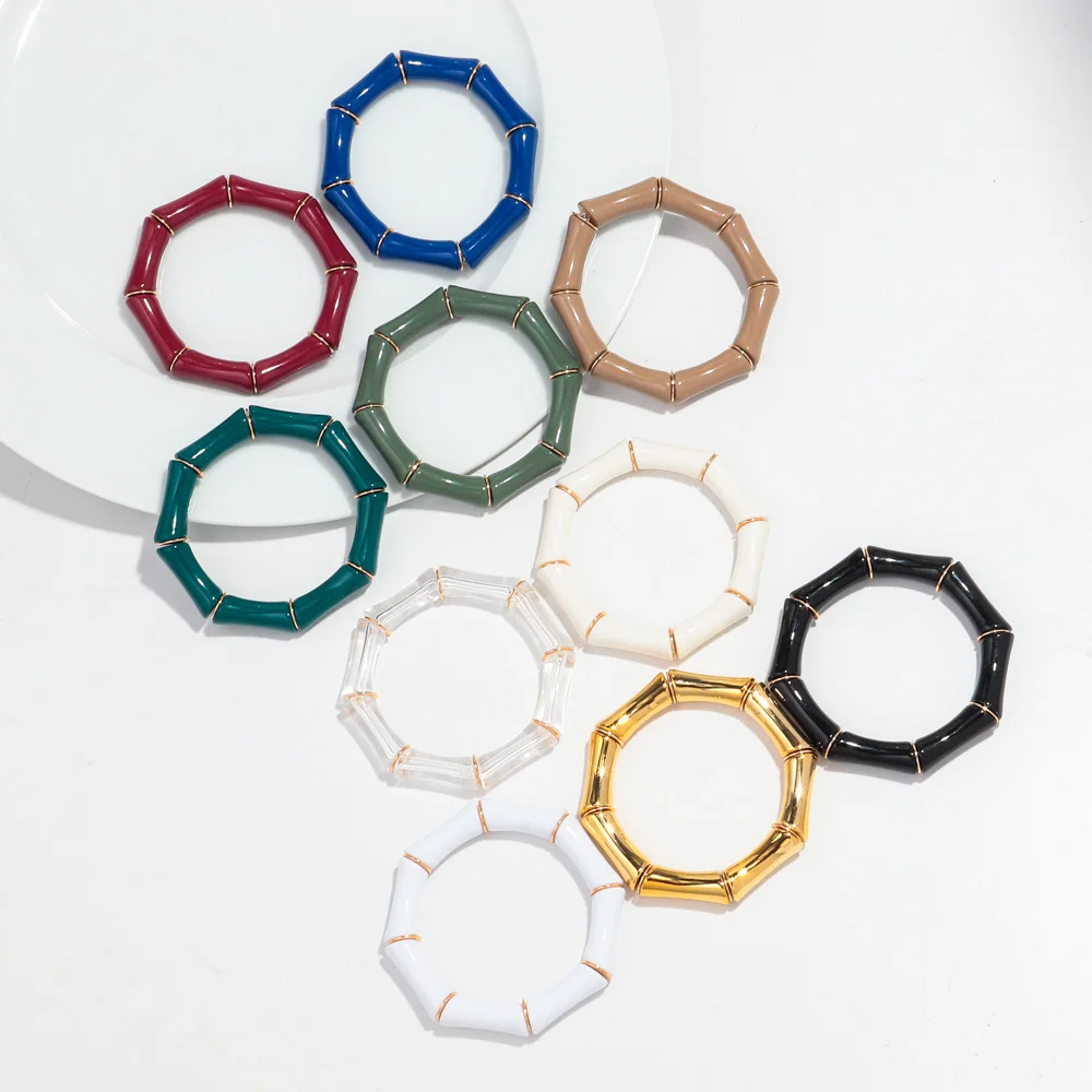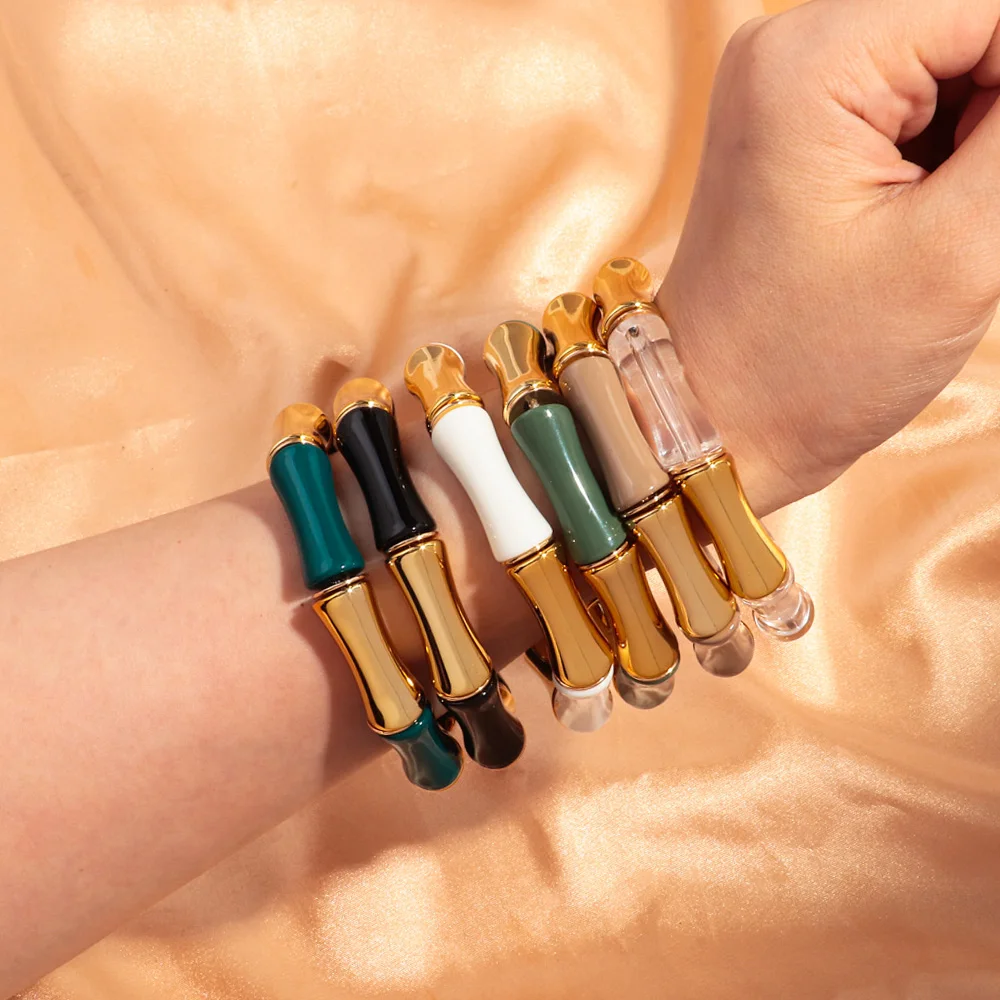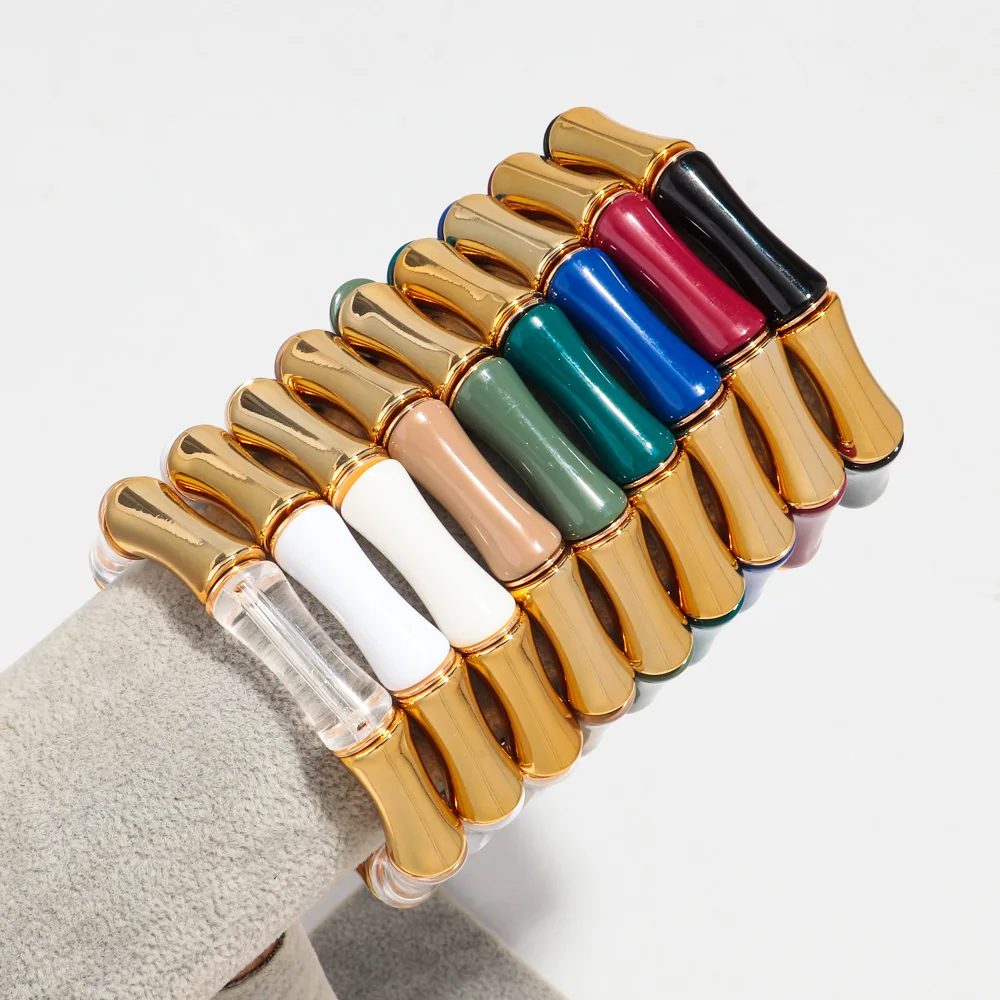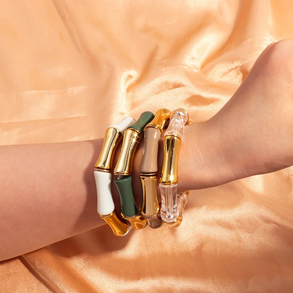 High Quality Acrylic Bamboo Curved Tube Elastic Bracelets for Women Men New Resin Chunky Elbow Beads Stack Bangle Couple Jewelry