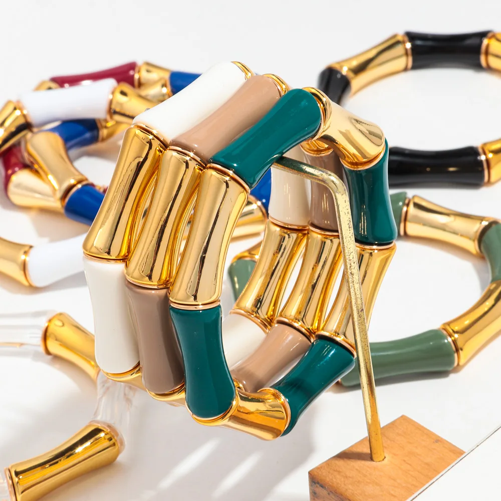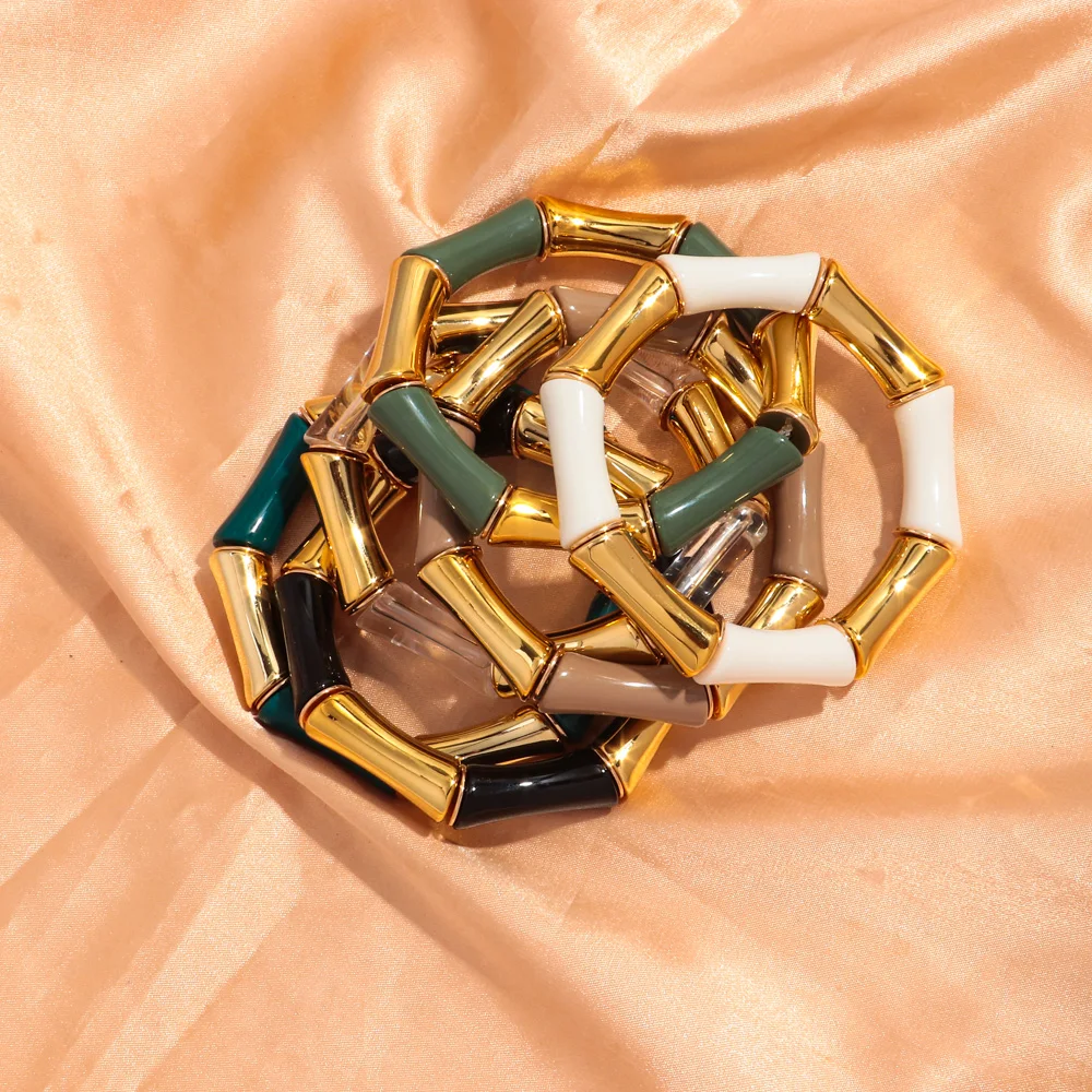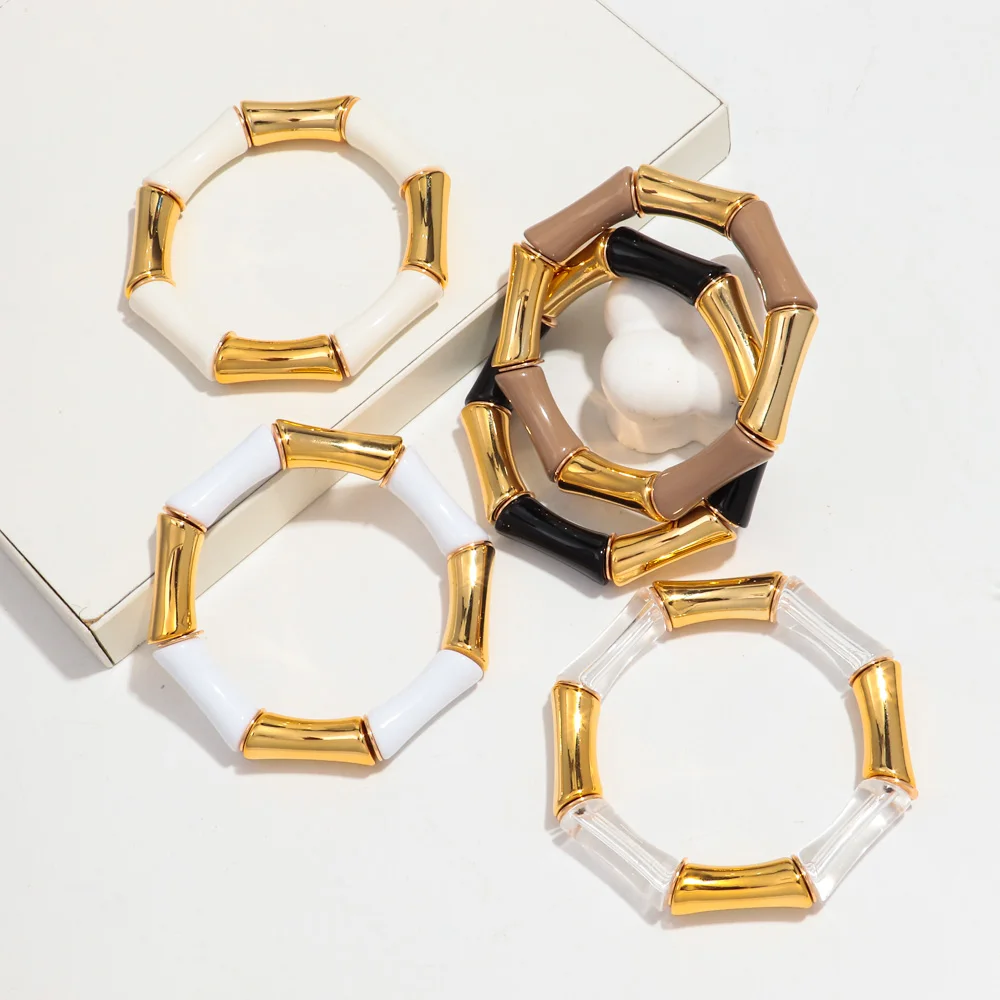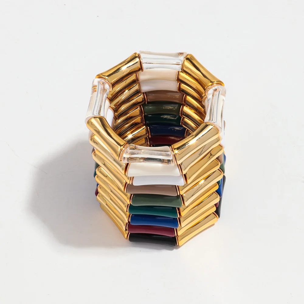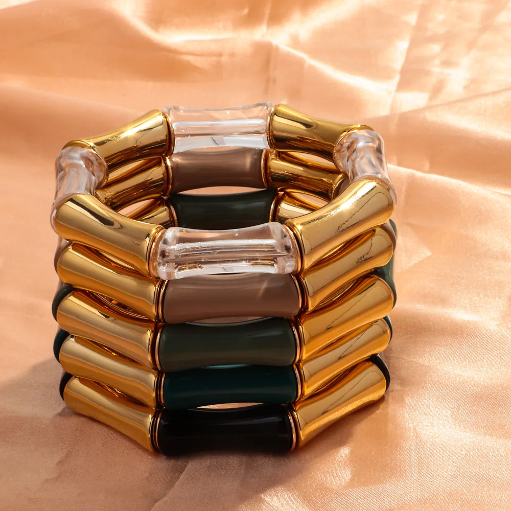 High Quality Acrylic Bamboo Curved Tube Elastic Bracelets for Women Men New Resin Chunky Elbow Beads Stack Bangle Couple Jewelry