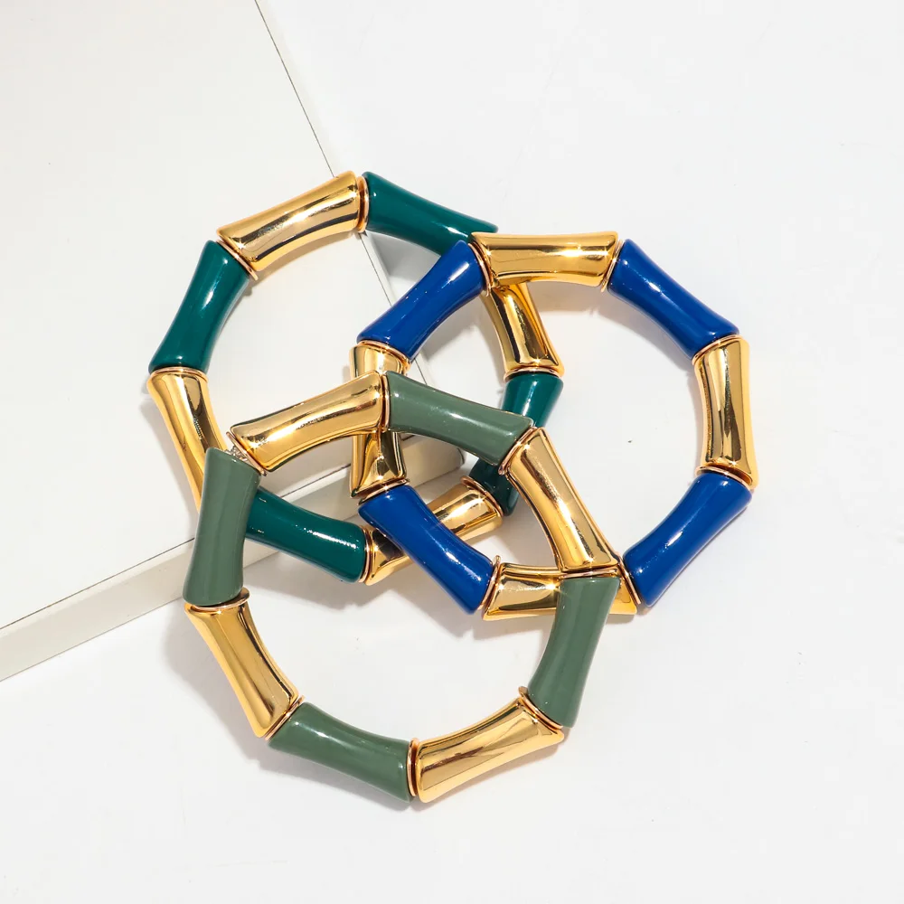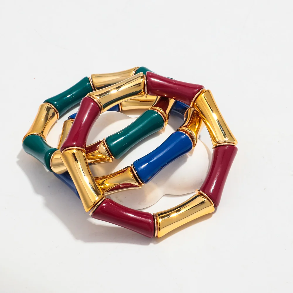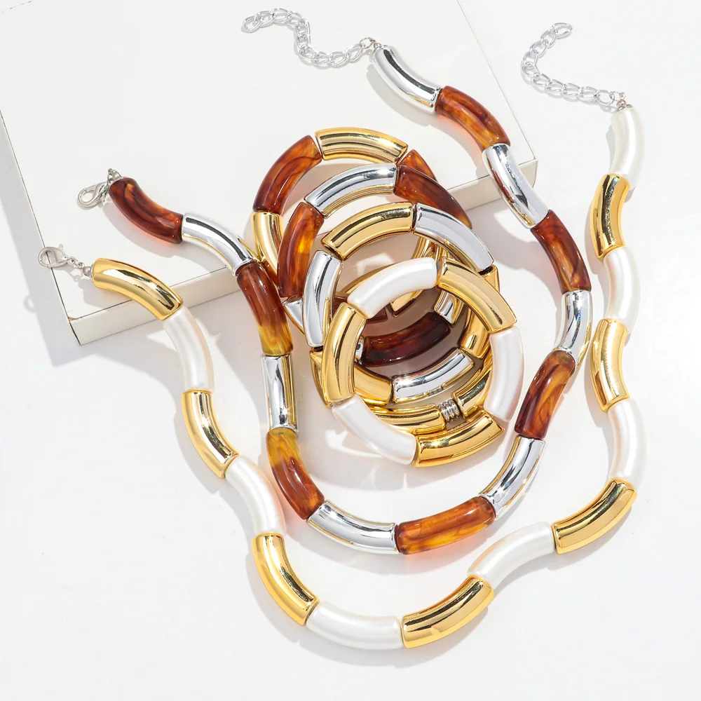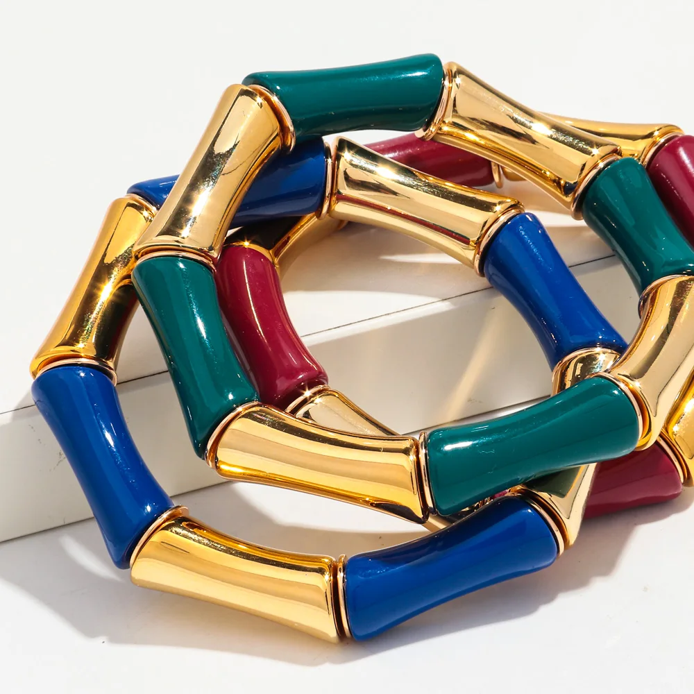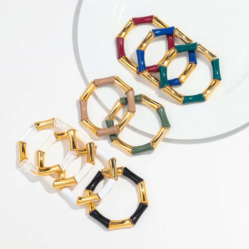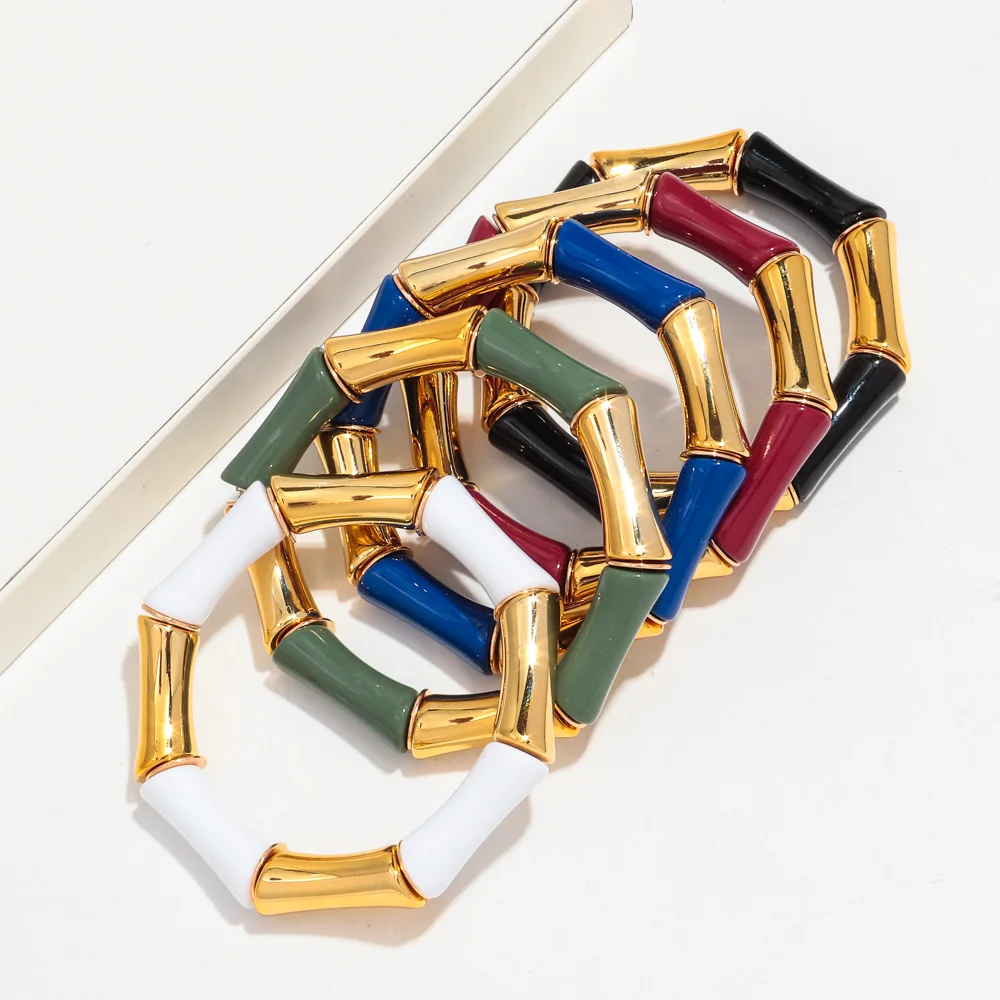 High Quality Acrylic Bamboo Curved Tube Elastic Bracelets for Women Men New Resin Chunky Elbow Beads Stack Bangle Couple Jewelry