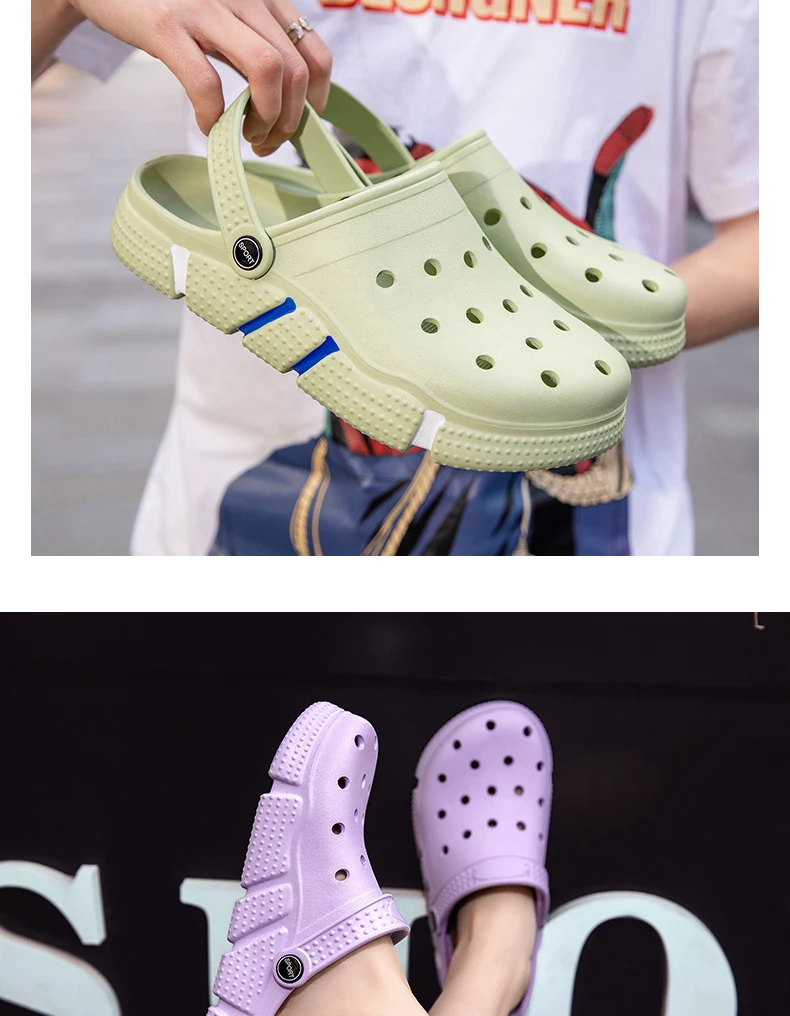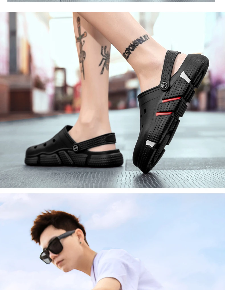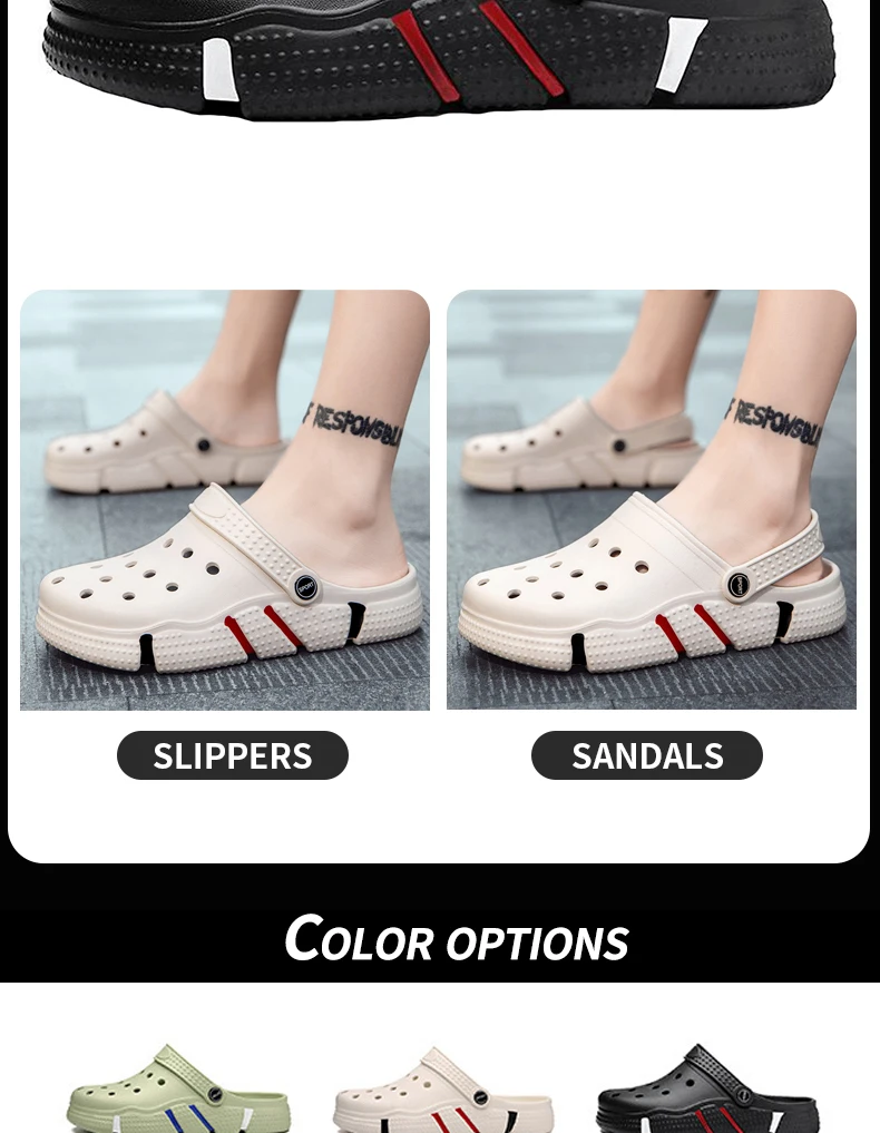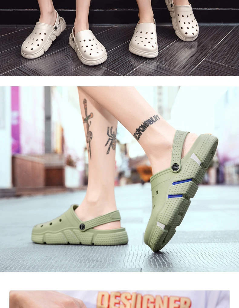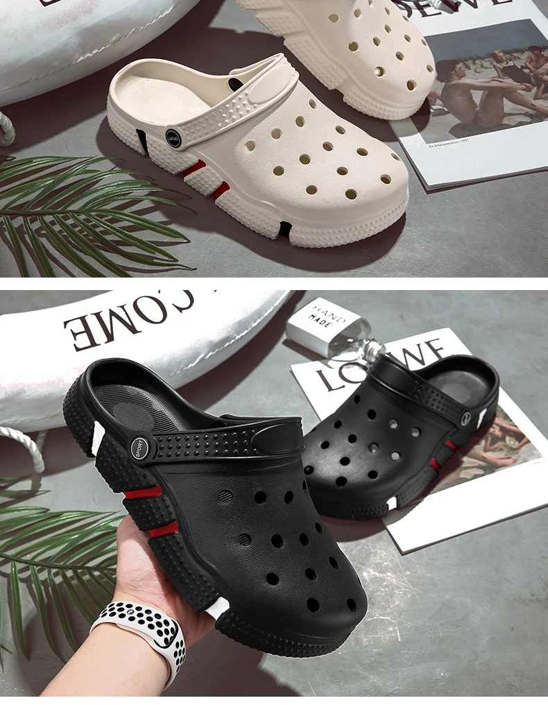 Large Size Slides Men’s Trendy Garden Shoes Eva Soft Sole Hollow Baotou Flip-flops Sandals for Men’s Leisure Beach Slippers