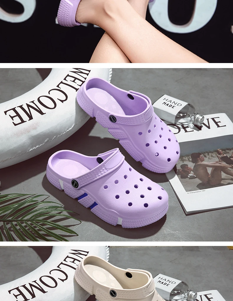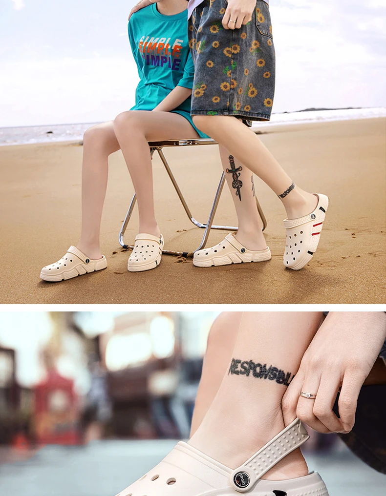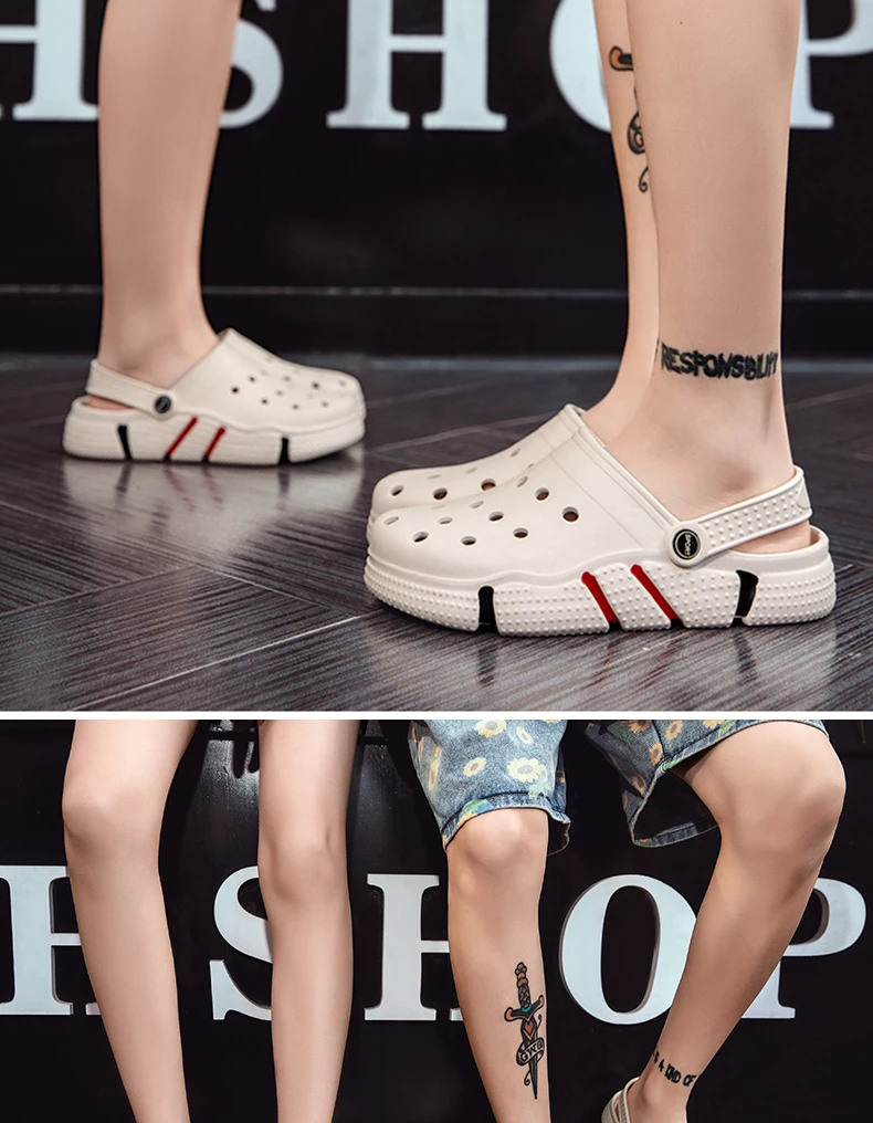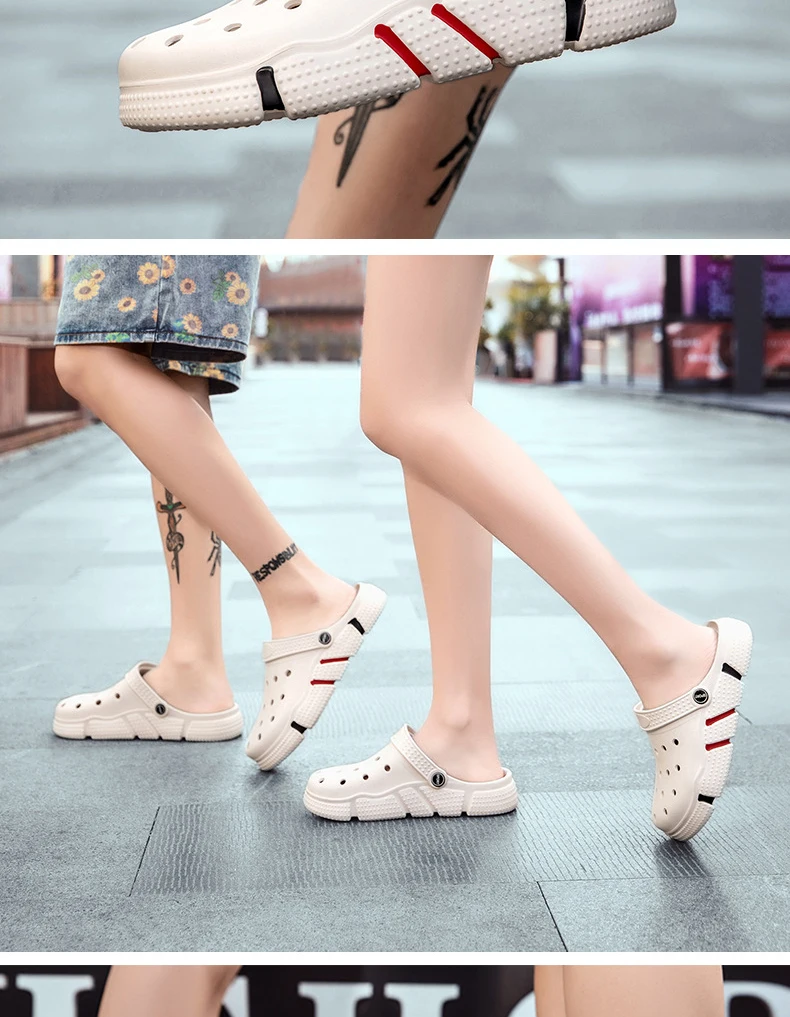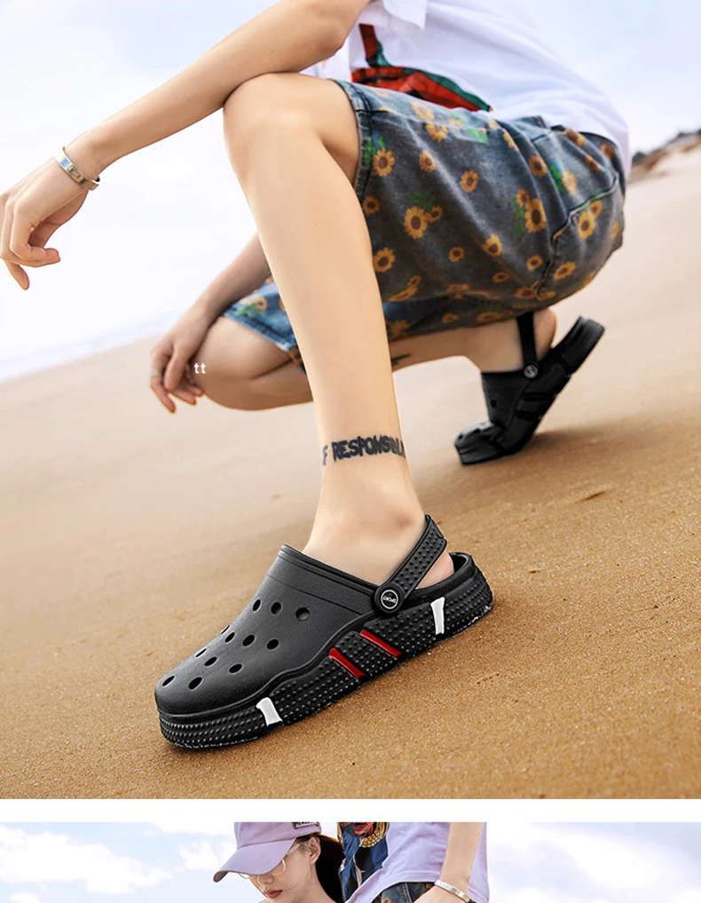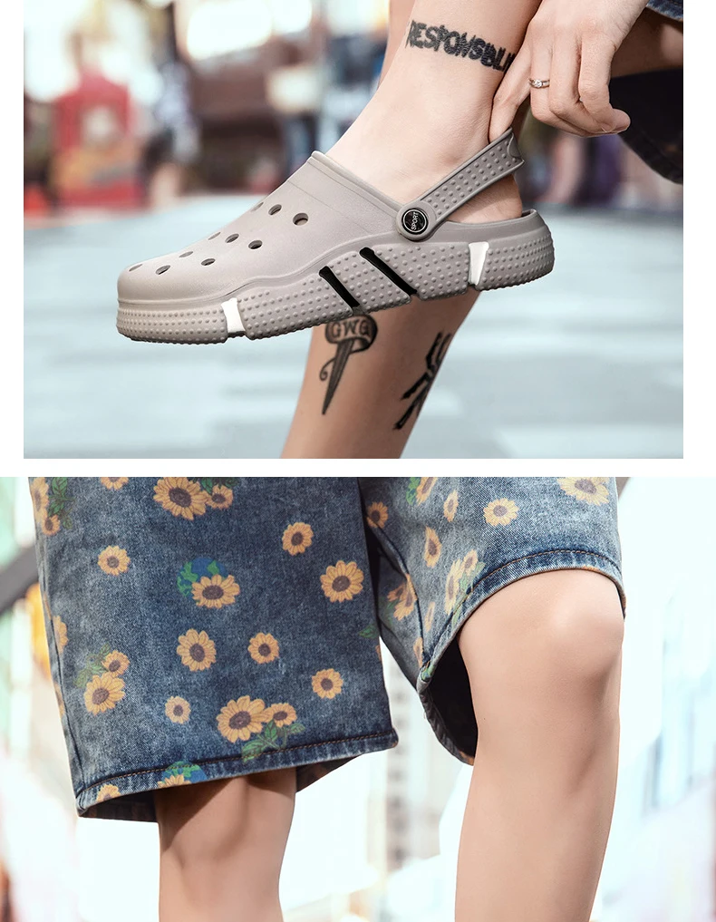 Large Size Slides Men’s Trendy Garden Shoes Eva Soft Sole Hollow Baotou Flip-flops Sandals for Men’s Leisure Beach Slippers