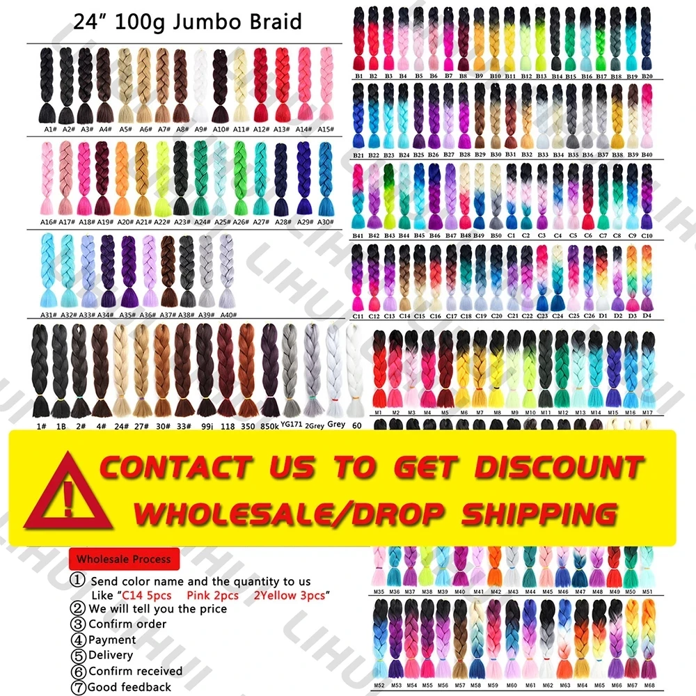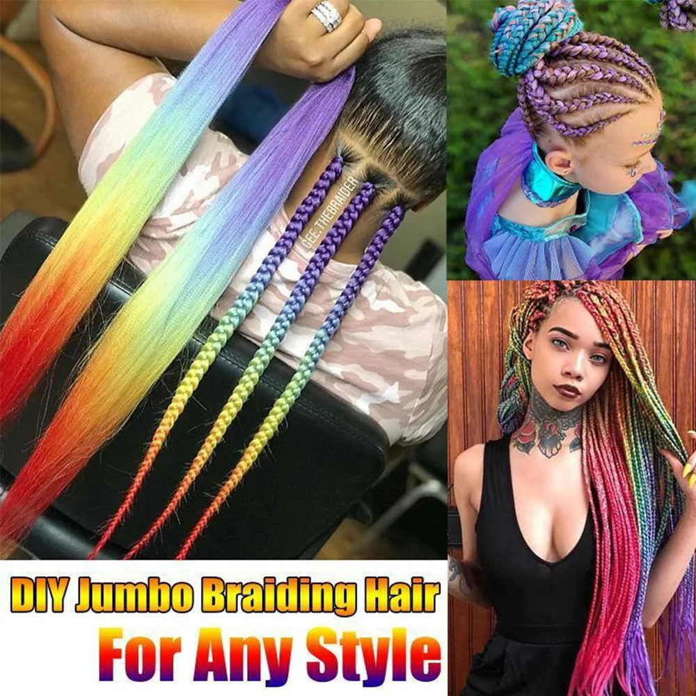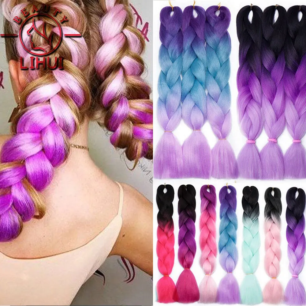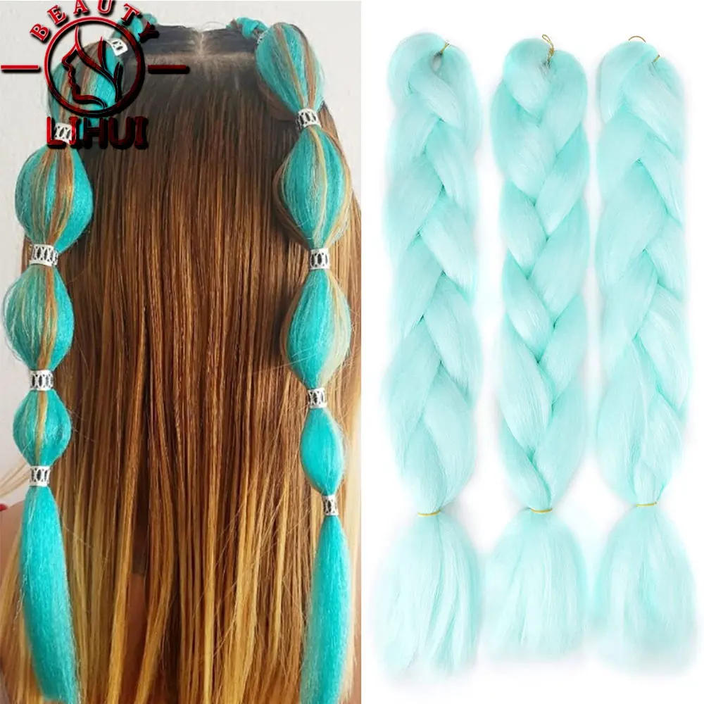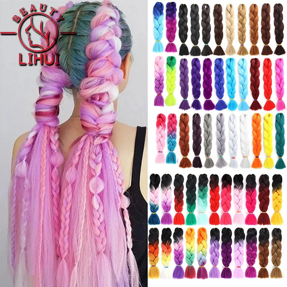Lihui Synthetic Braiding Hair Pre Stretched Jumbo Braid Hair Extensions 24 inch Kanekalon Hair For African Braids 100g