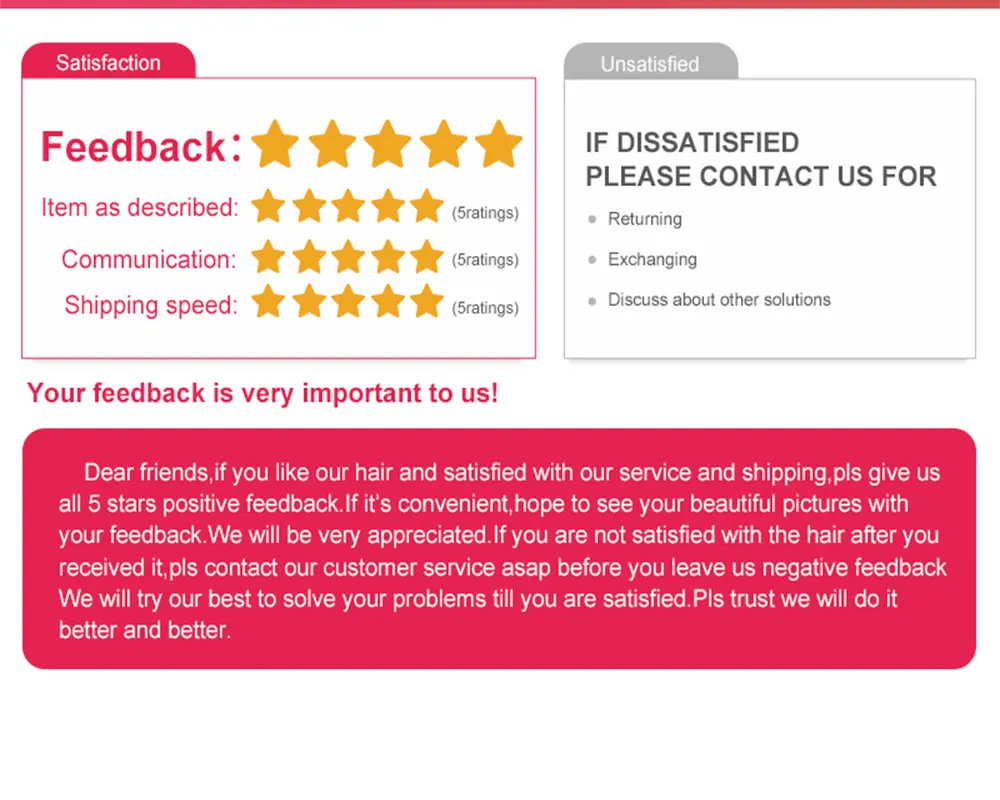 • If you received the wrong item you can request a refund or a reshipment.