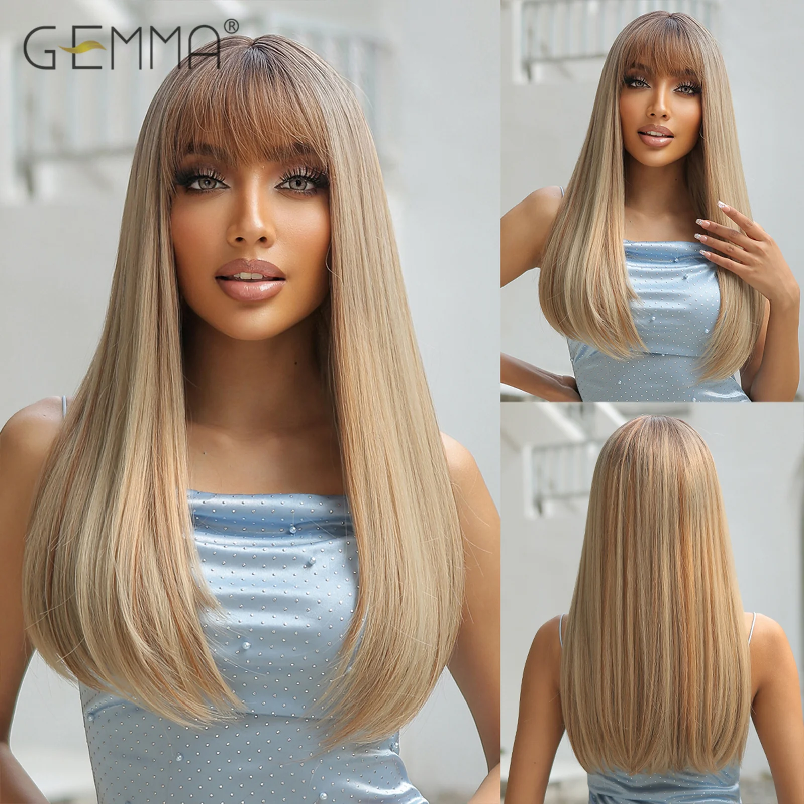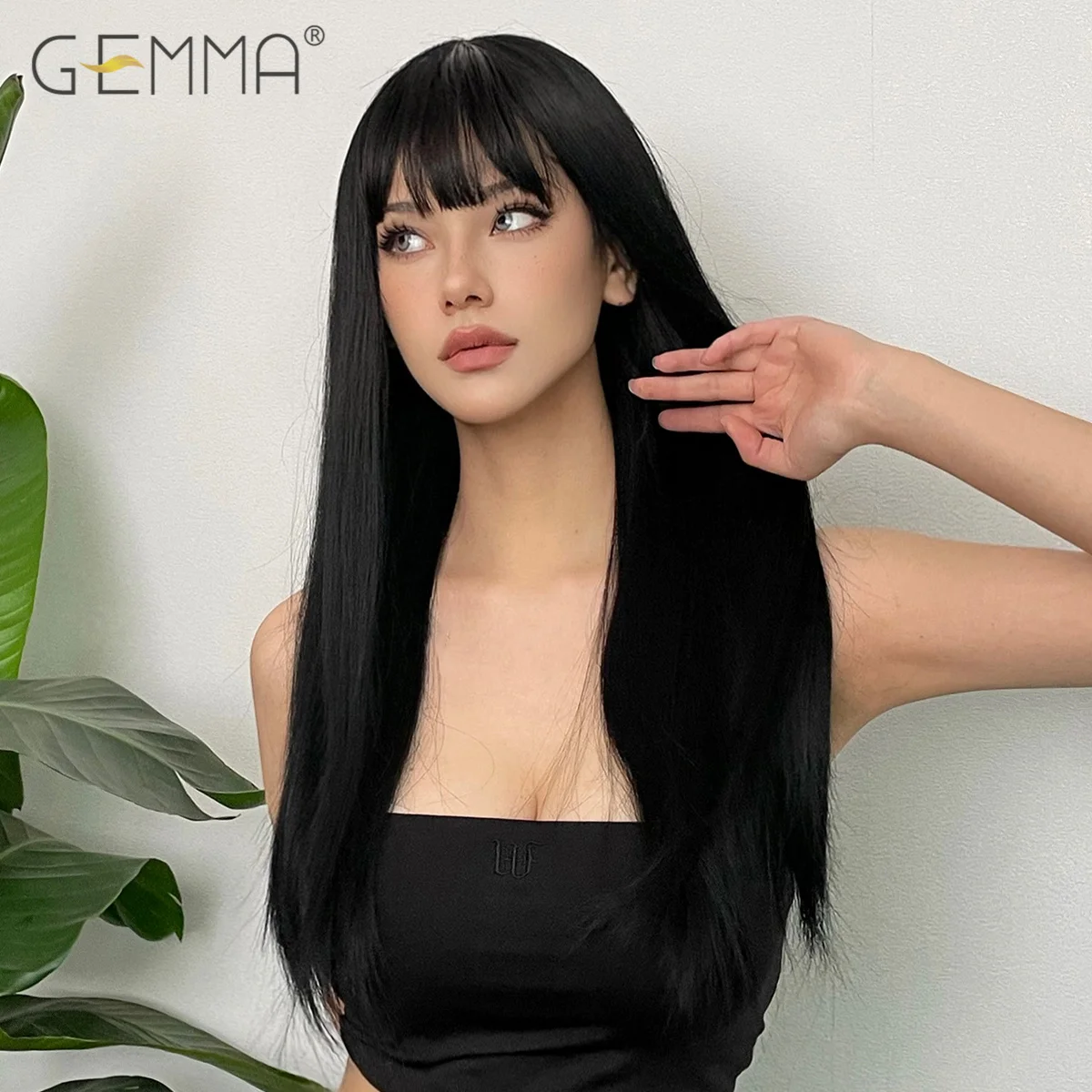 Long Straight Synthetic Wig Black Daily Use Wigs with Bangs for Women Heat Resistant Fibre Cosplay Lolita Party Natural Hair
