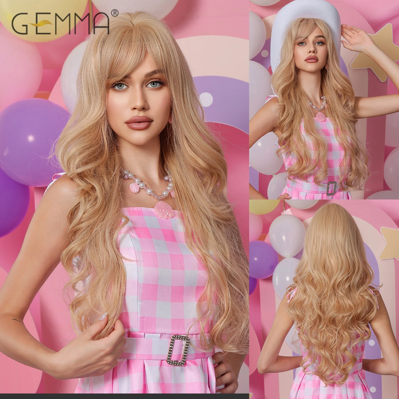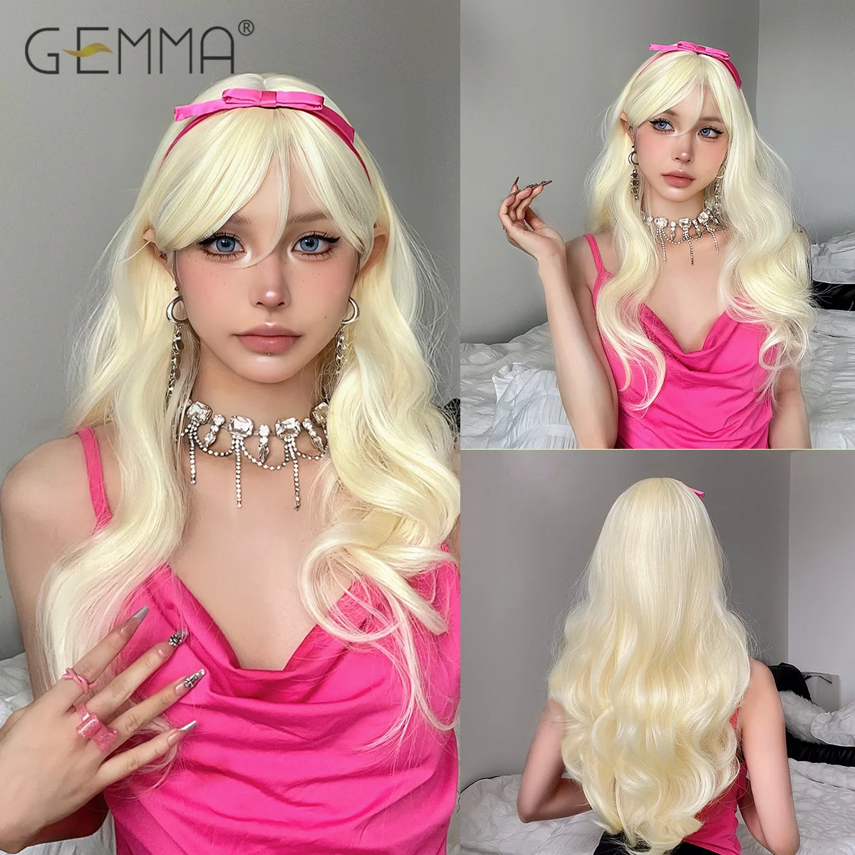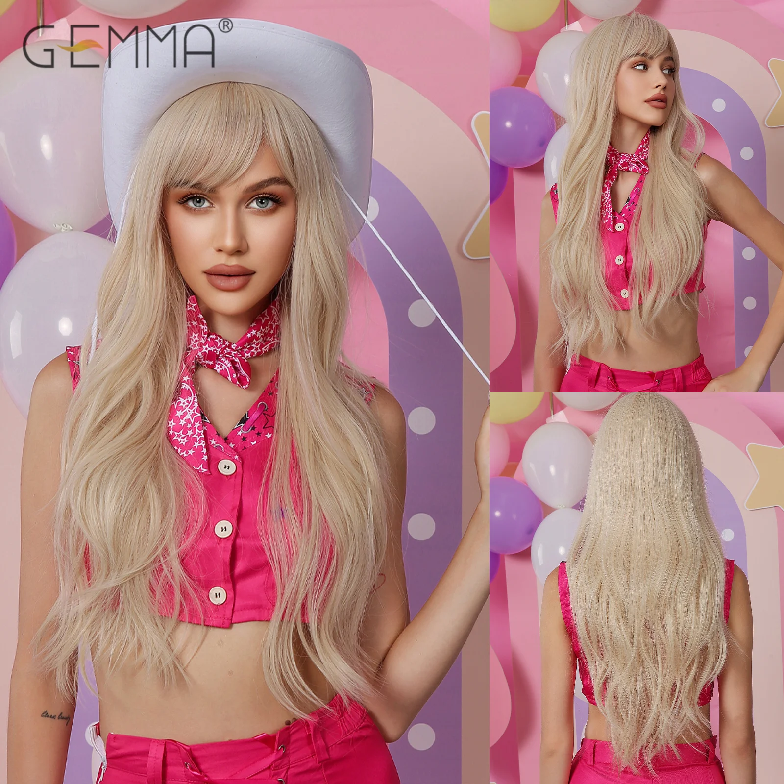 Long Wavy Light Ash Blonde Synthetic Wigs with Bangs for Women Natural Wave Cosplay Party Daily Use Hair Wigs Heat Resistant