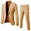 Wearing this long sleeve solid color turndown collar fine texture suits set, you are more temperament and handsome.